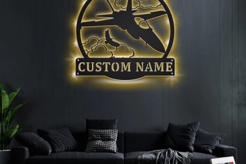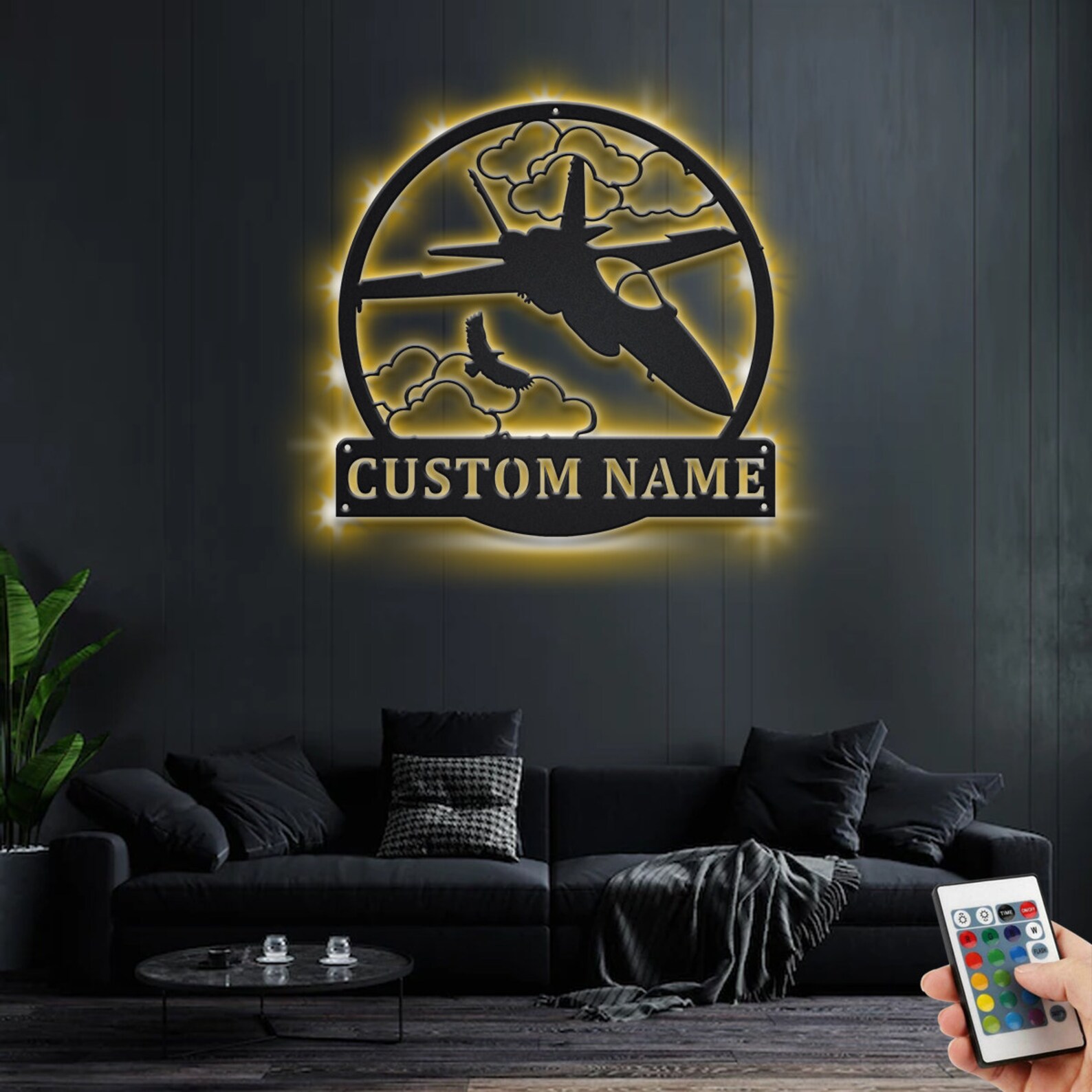 Custom Fighter Jet Metal Sign with LED – Pilot Decoration