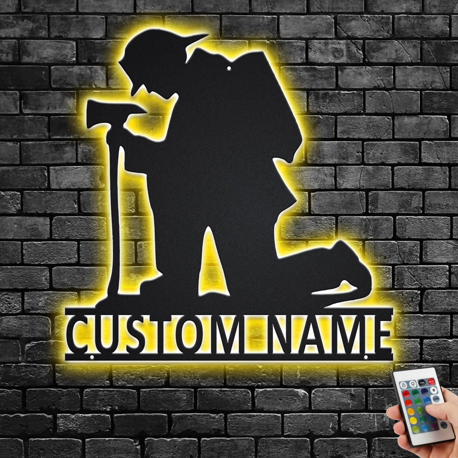 Custom Fireman Kneeling Metal Sign with LED – Room Decoration
