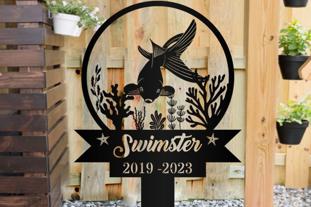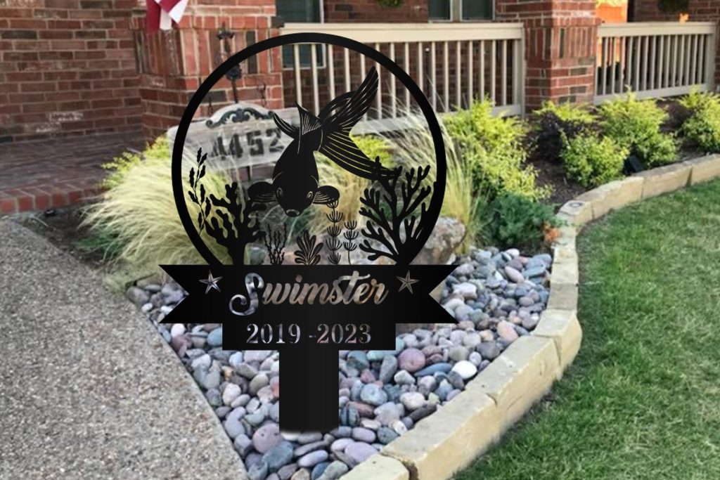 Custom Fish Pet Memorial Garden Stake,Personalized Grave Marker Stake,Fish Memorial Metal Sign,Yard Stake,Outdoor Fish Garden Decor