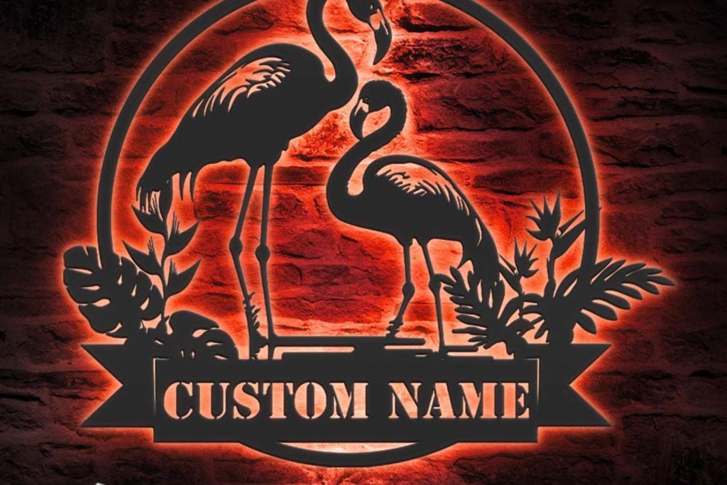 Be the first to review “Custom Flamingo Metal Wall Art with LED & Name”