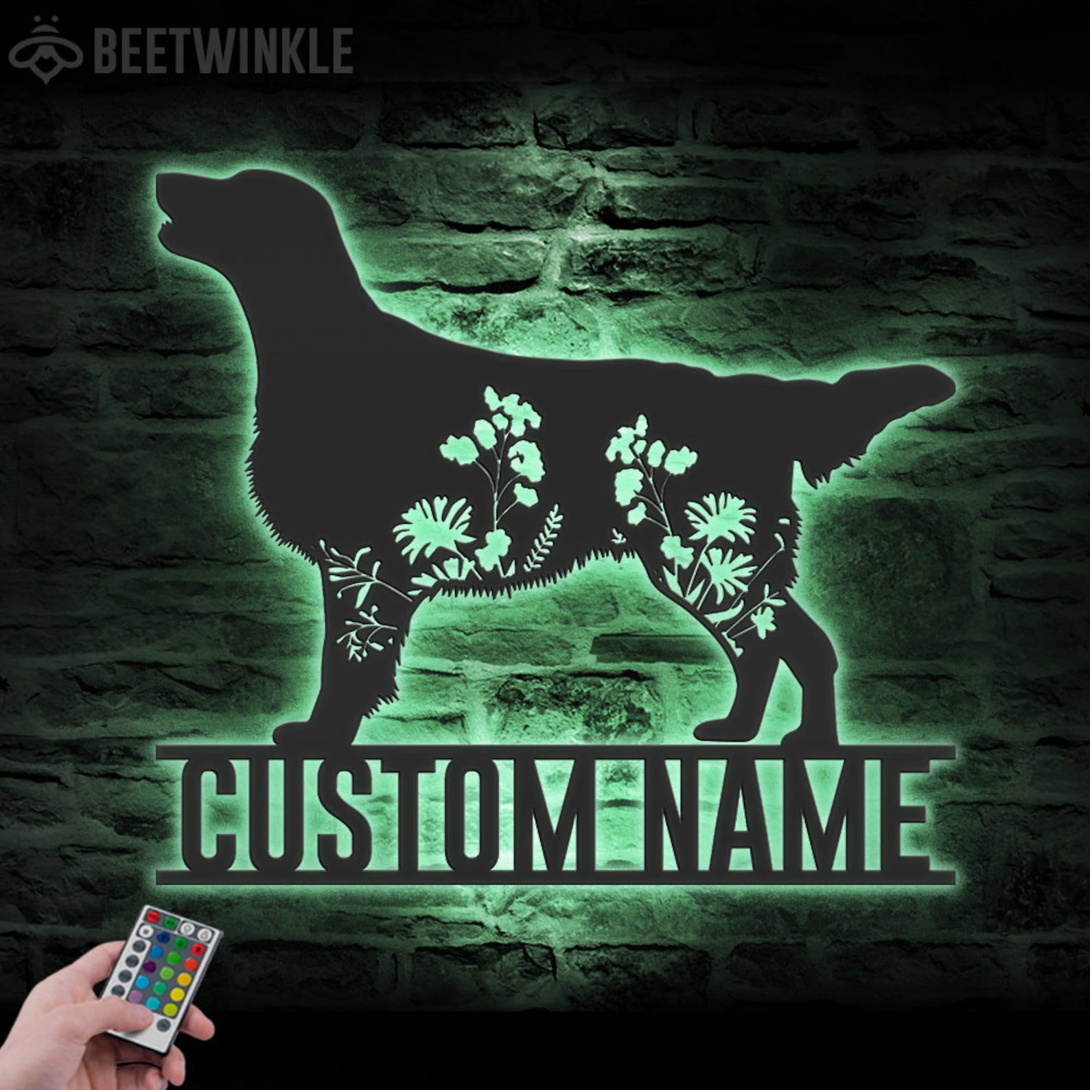 Be the first to review “Custom Flat-coated Retriever Floral LED Metal Art – Dog Sign”