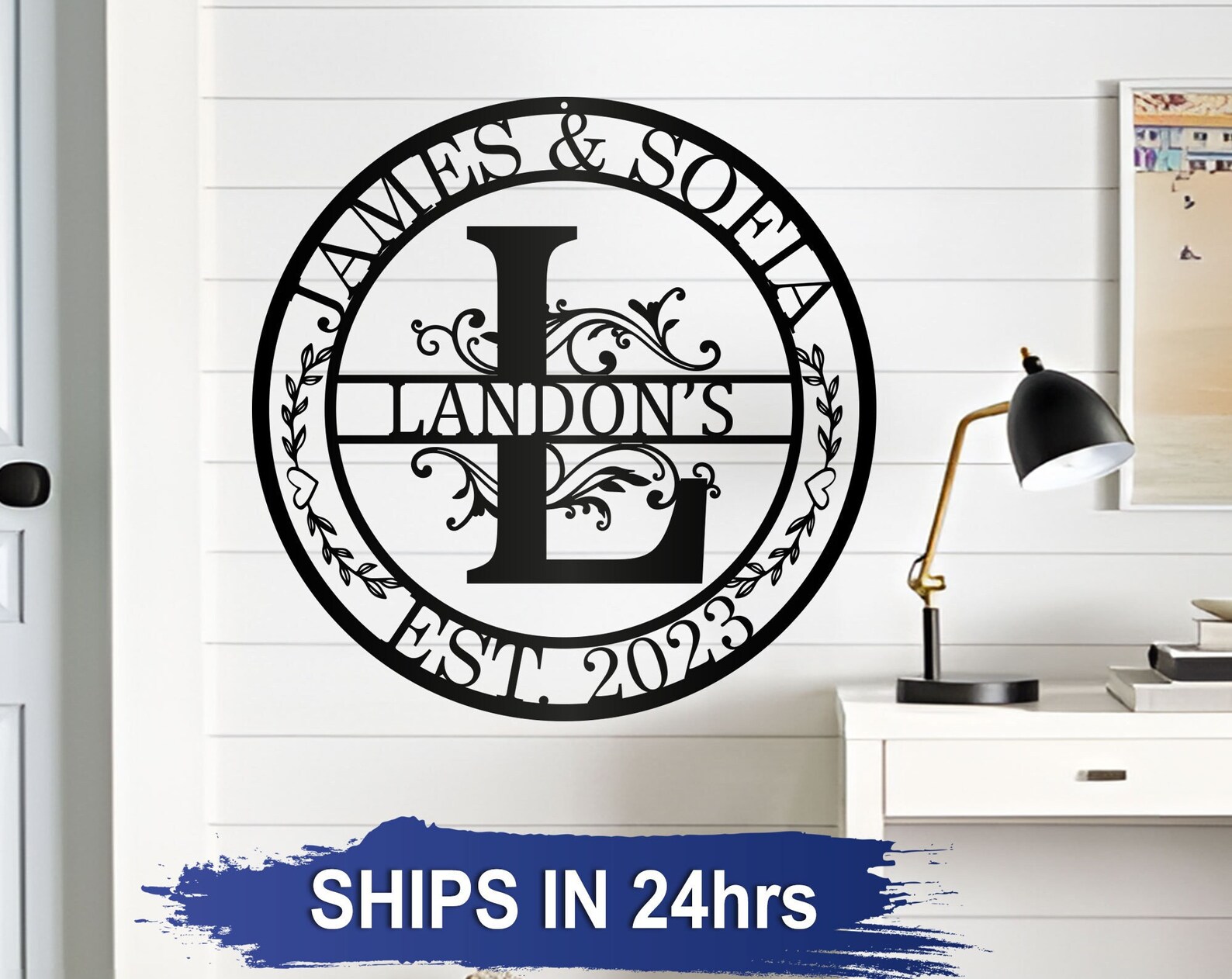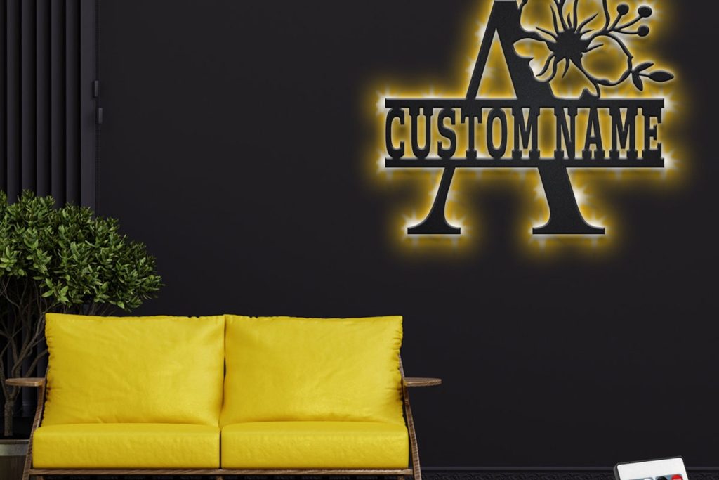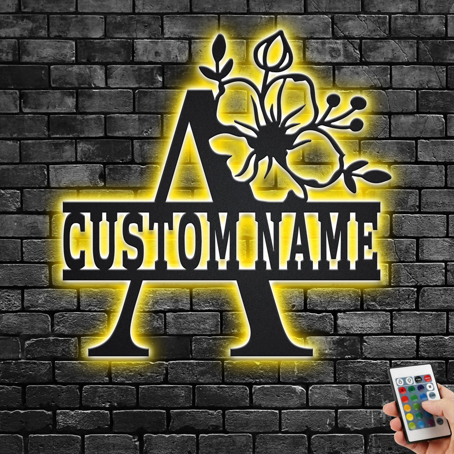 Custom Floral Alphabet A Metal Sign with LED – Family Name Decor