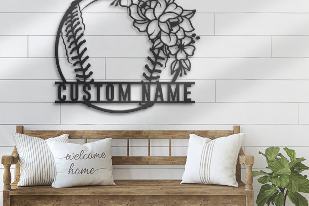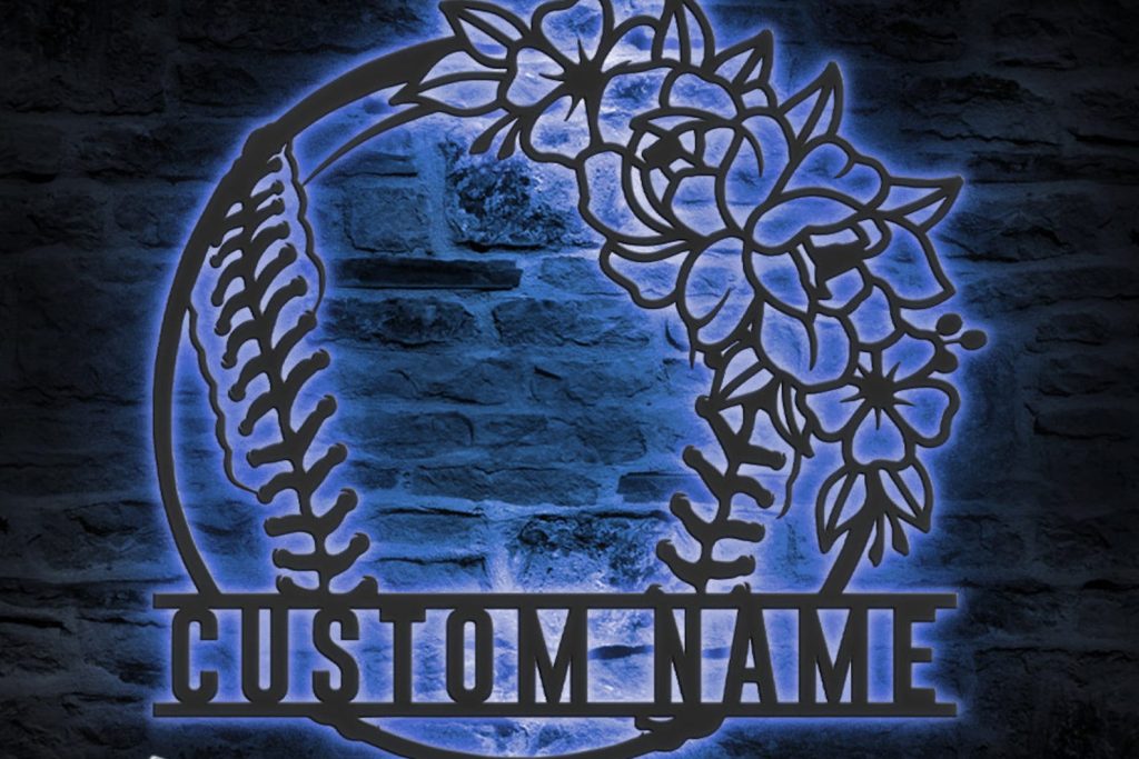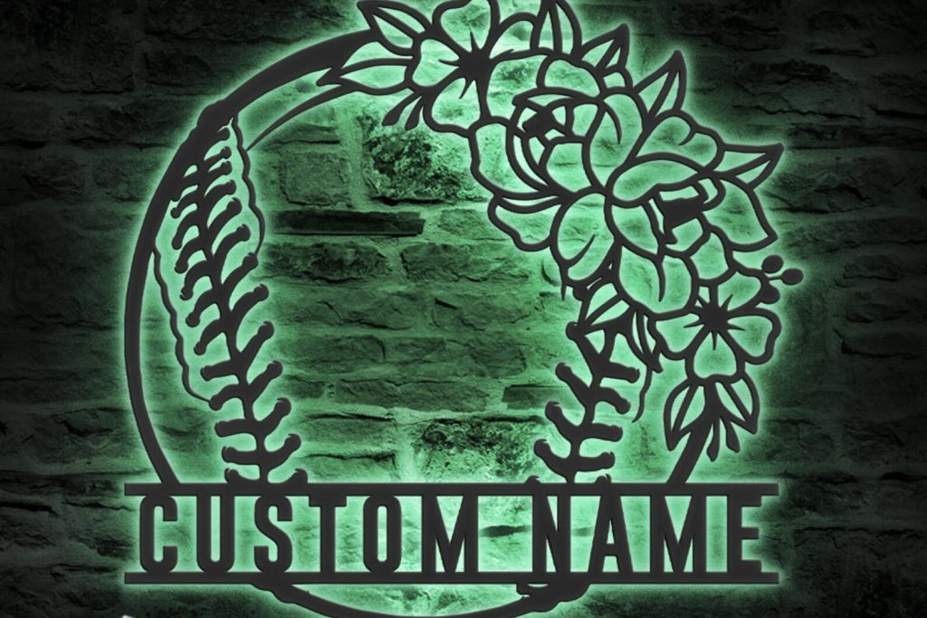 Be the first to review “Custom Floral Baseball Mom Metal Art with LED Light”