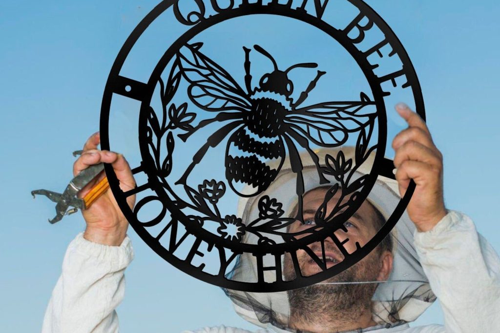 Custom Floral Bee Metal Sign – Farm Kitchen Wall Art