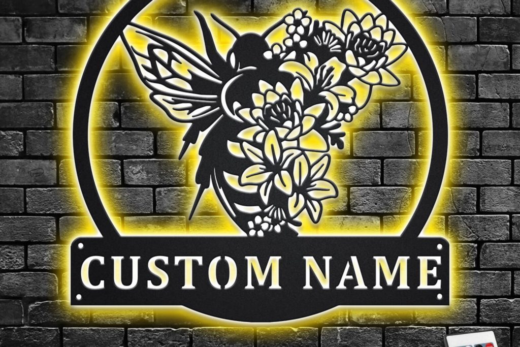 Custom Floral Bee Sign, Personalized Decor