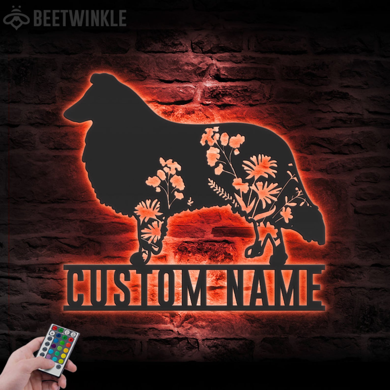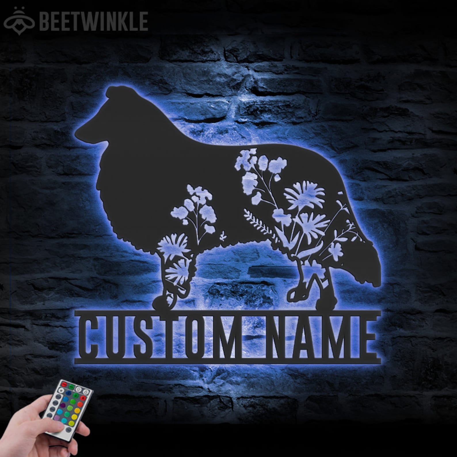 Be the first to review “Custom Floral Collie LED Metal Art – Dog Lover Name Sign”