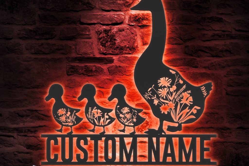 Be the first to review “Custom Floral Duck Farmhouse LED Metal Art – Coop Name Sign”