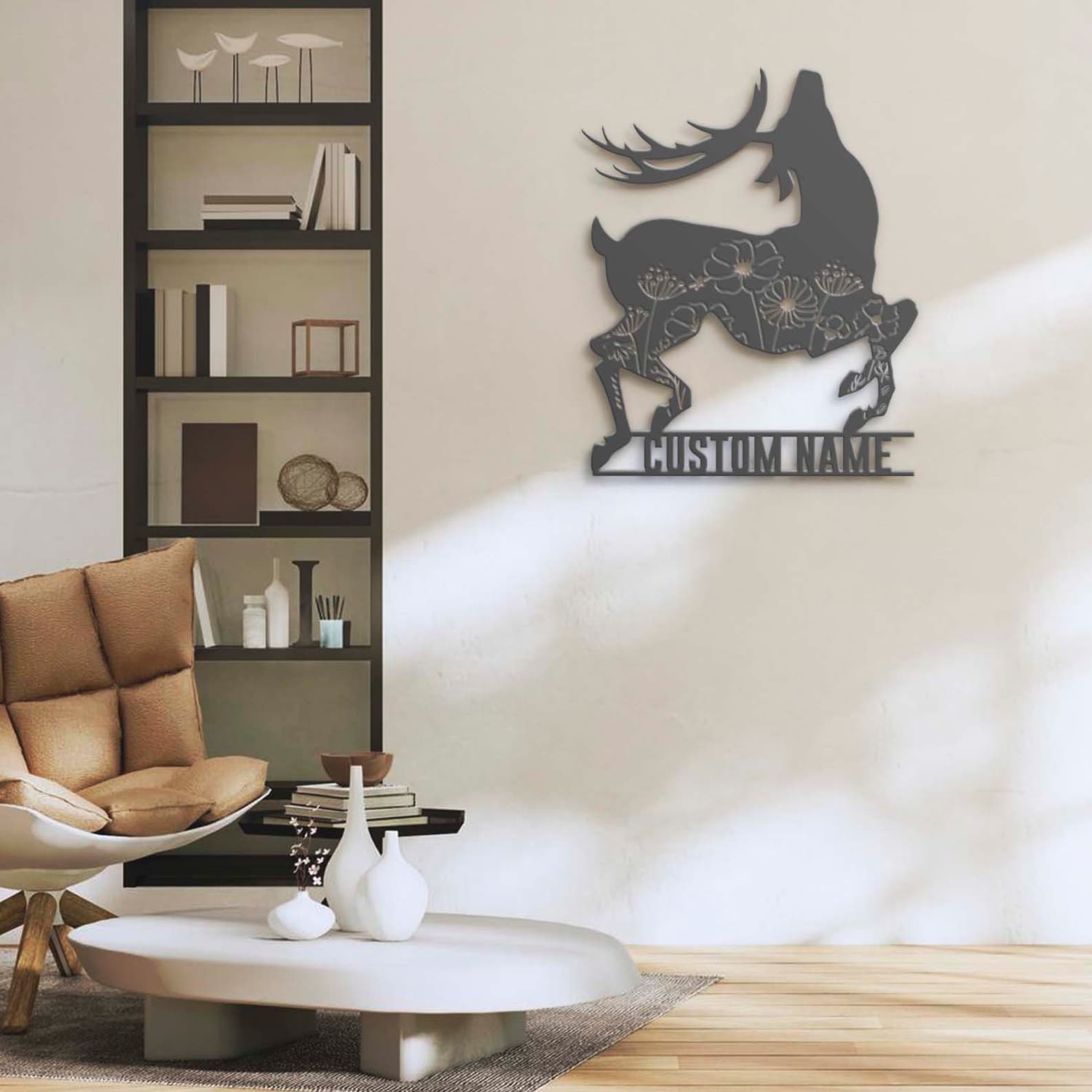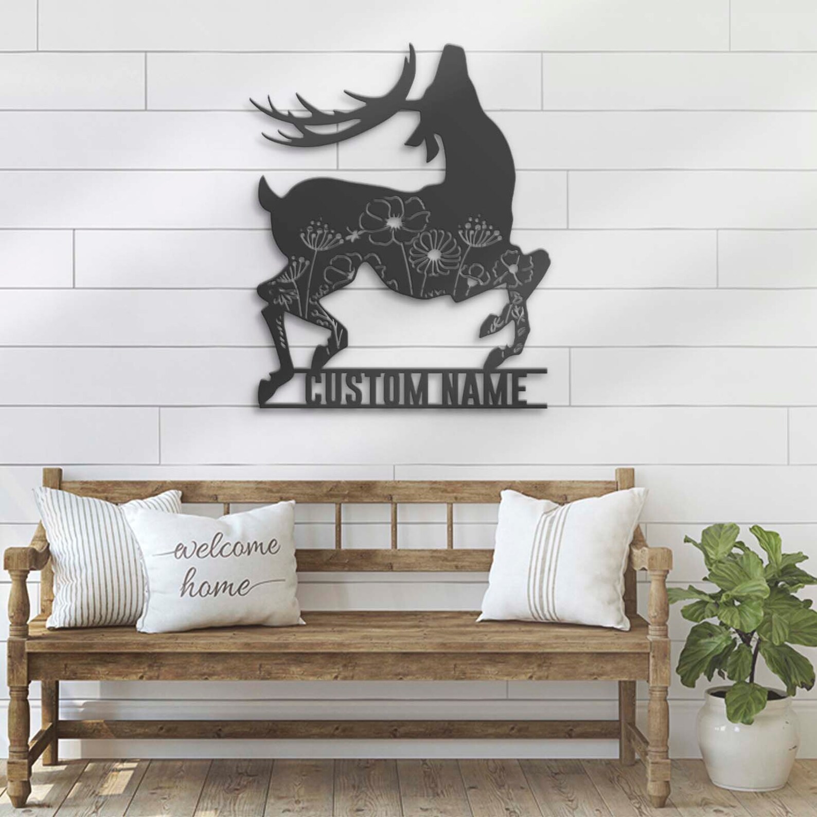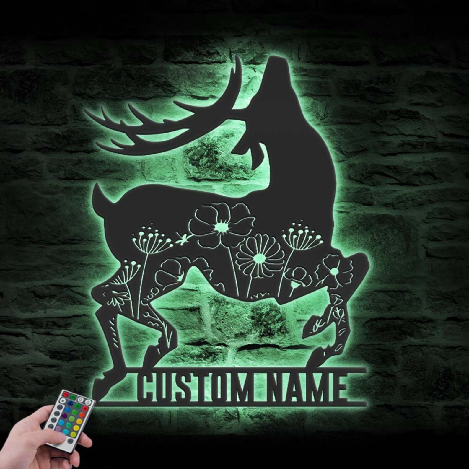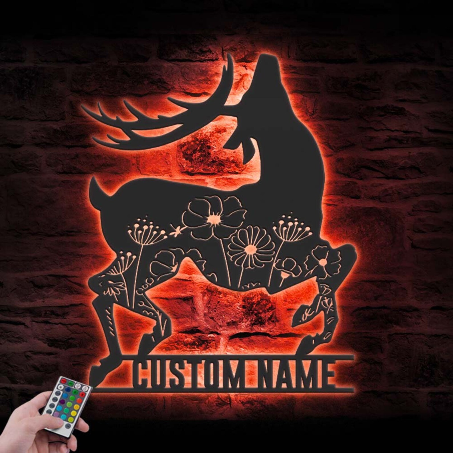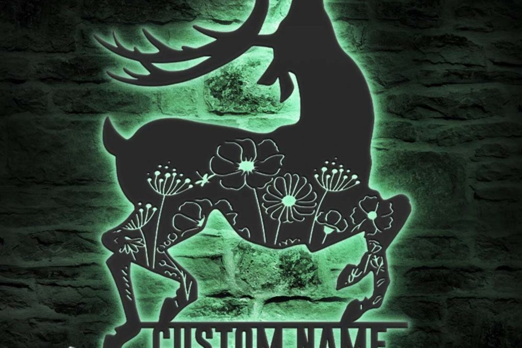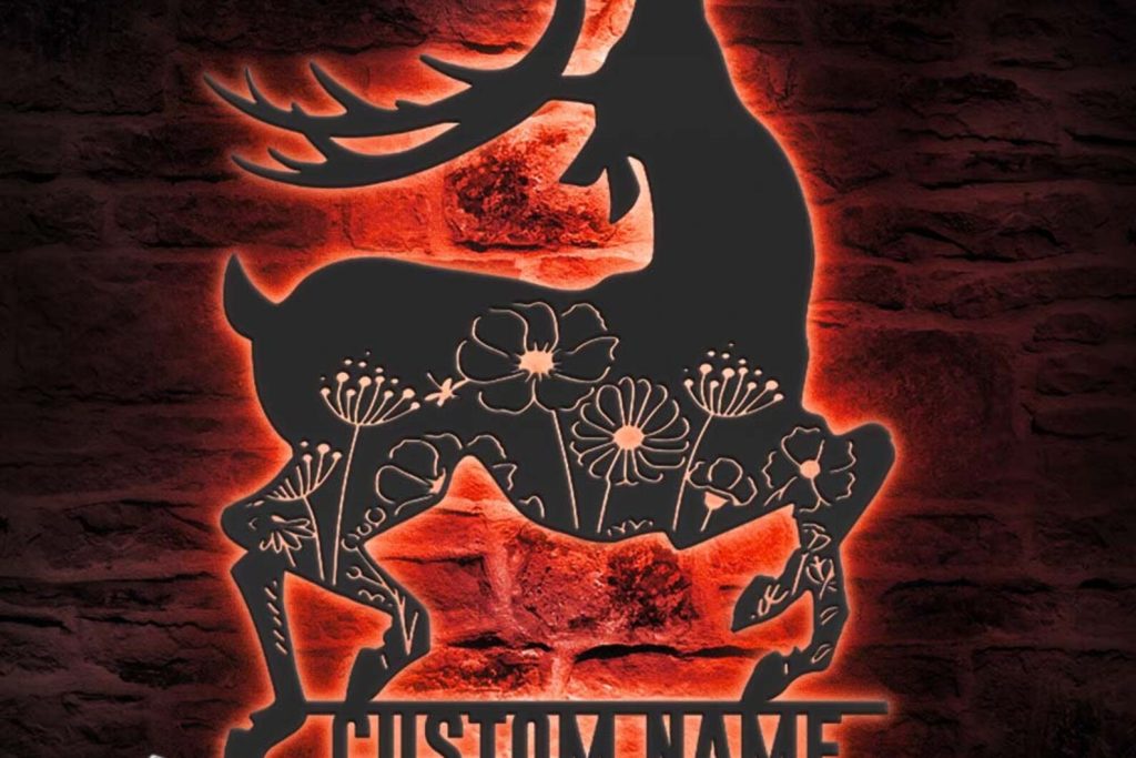 Custom Floral Elk Deer Metal Sign with LED – Cabin Decor