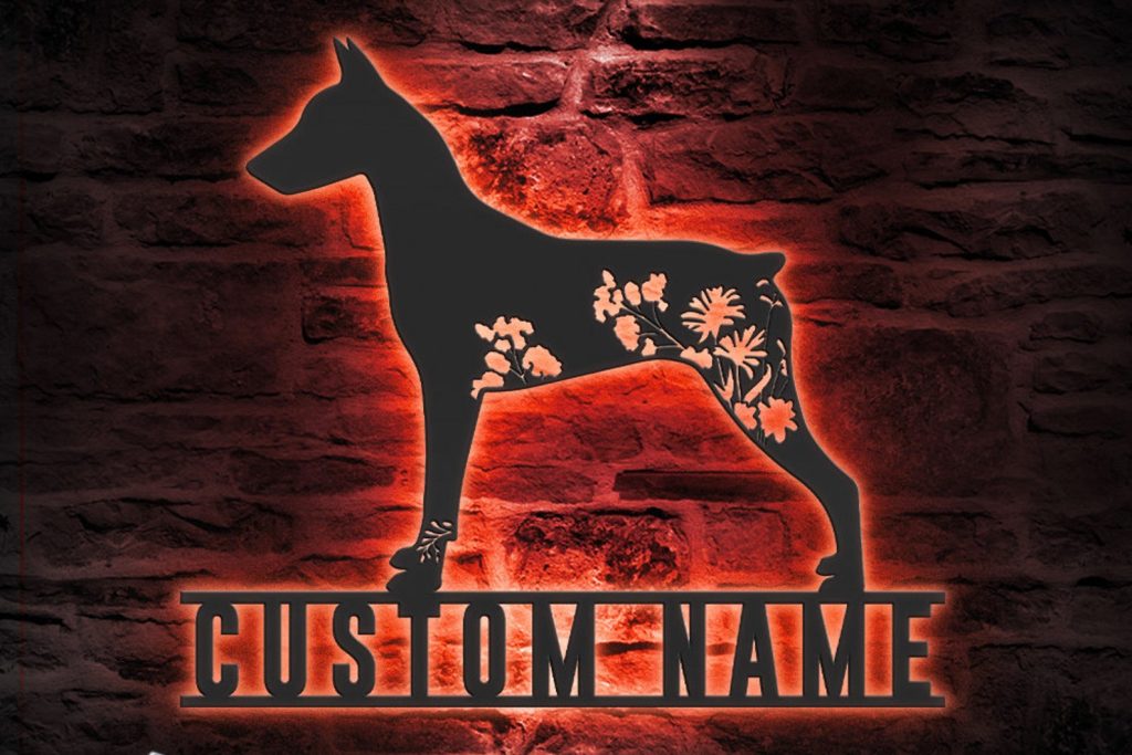 Be the first to review “Custom Floral German Pinscher Metal Sign with LED – Dog Lover Decor”