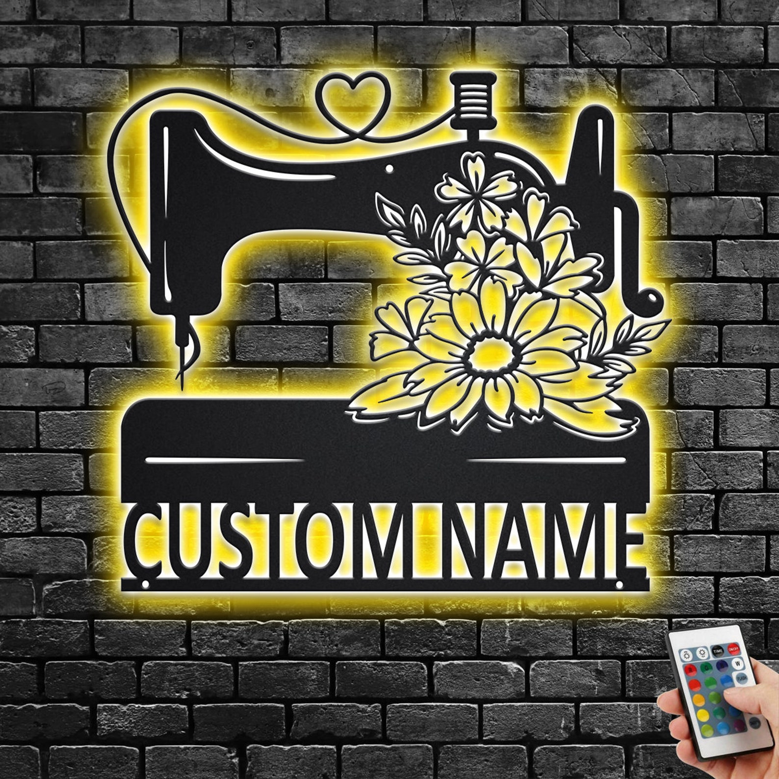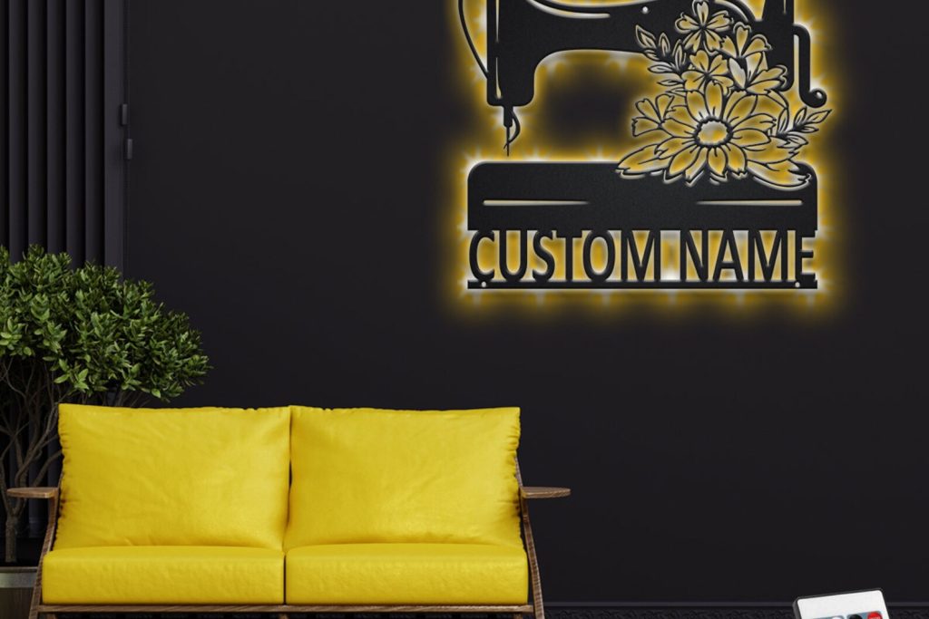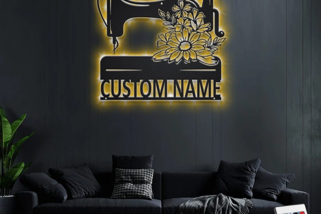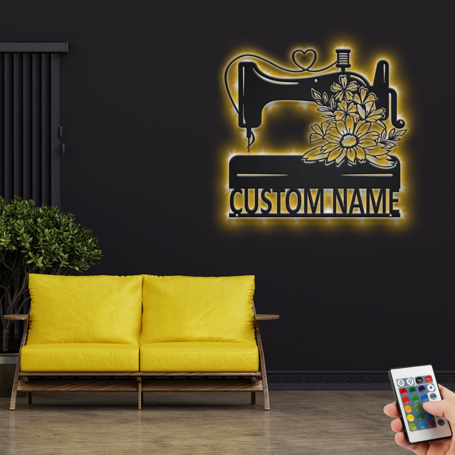 Custom Floral Sewing Machine Metal Sign with LED – Room Decor