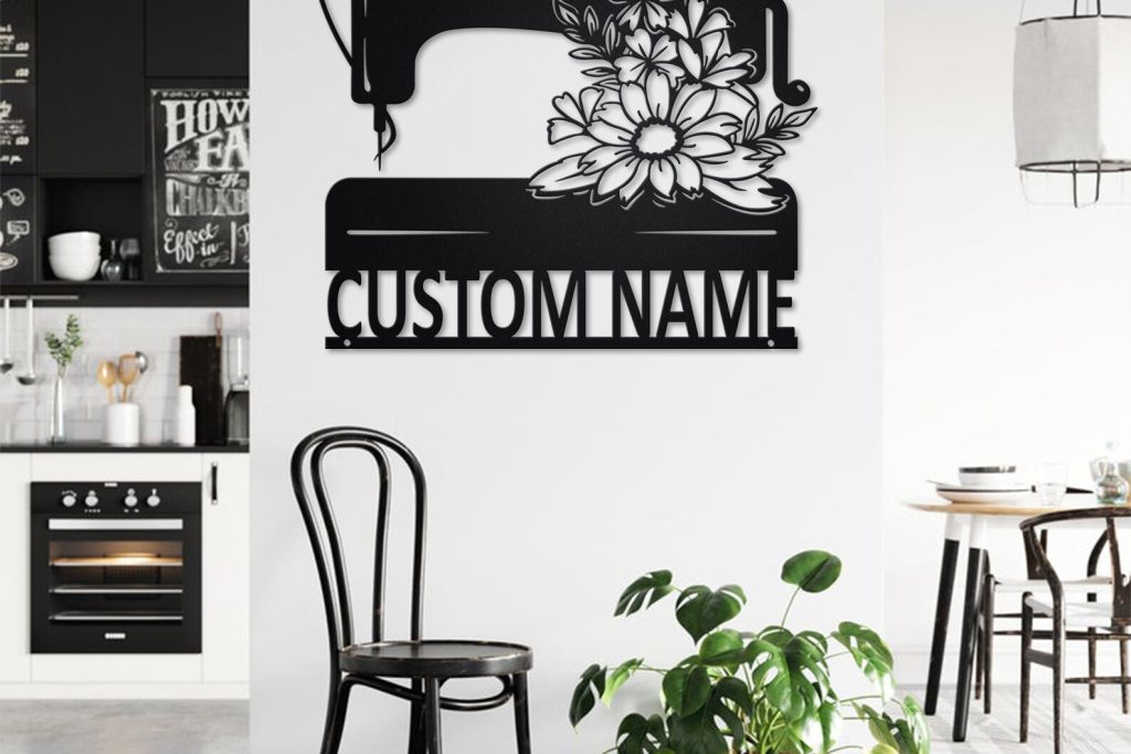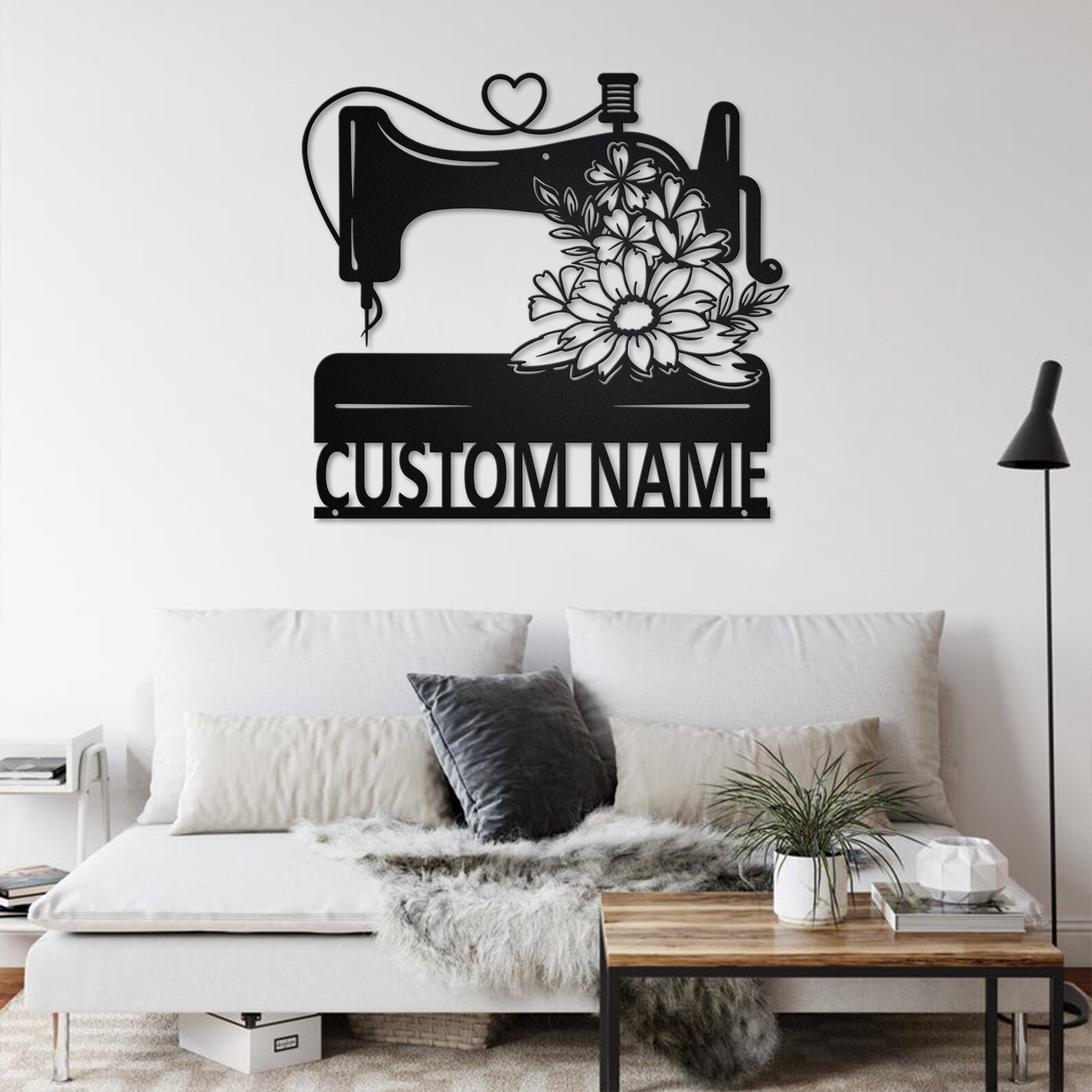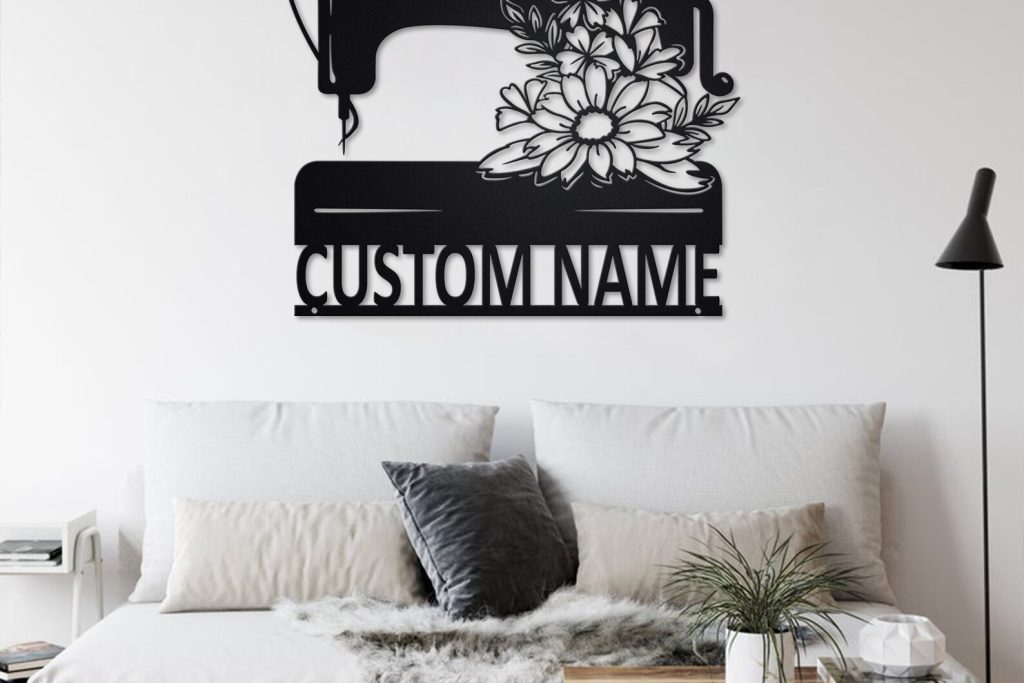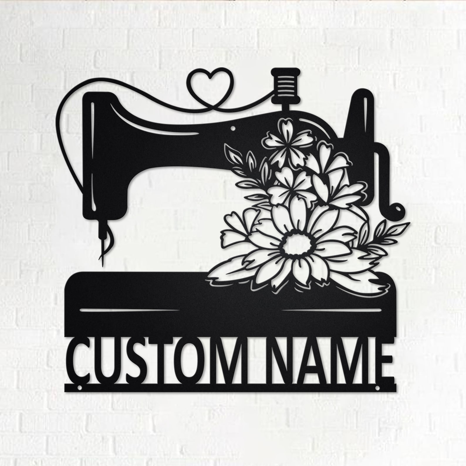 Custom Floral Sewing Machine Metal Sign with LED – Room Decor