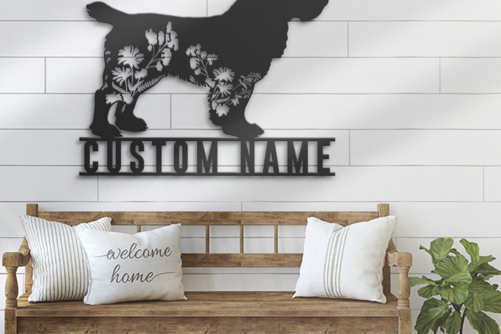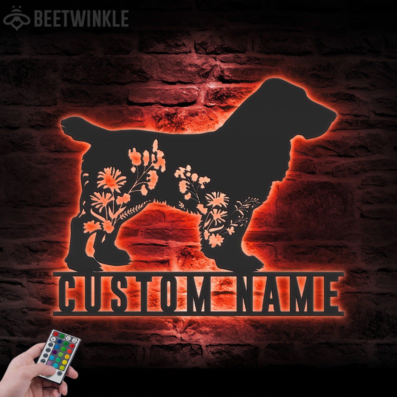 Custom Floral Sussex Spaniel LED Metal Art – Dog Lover Sign