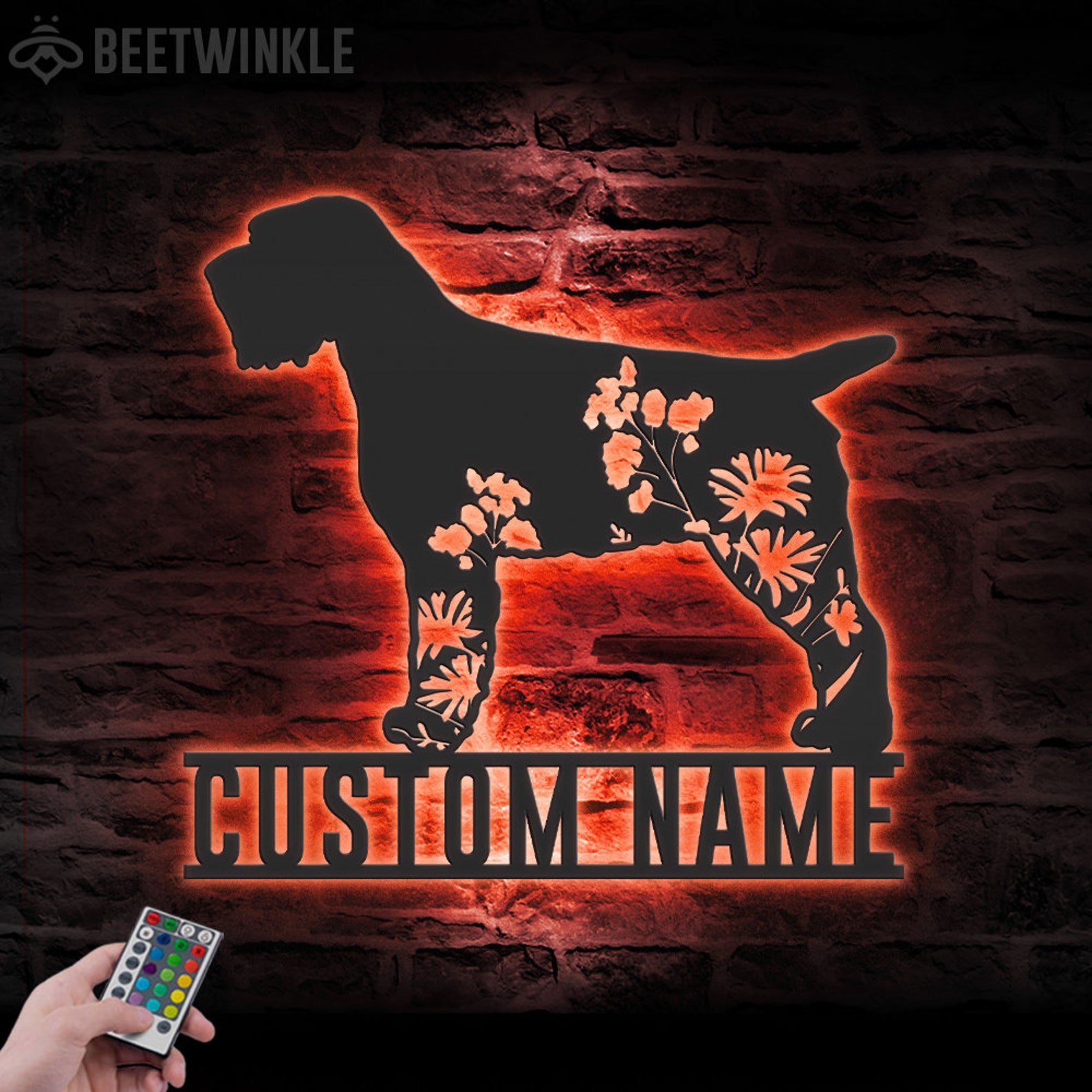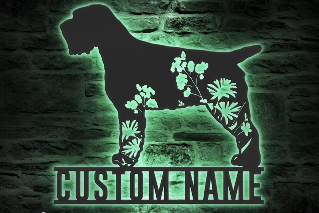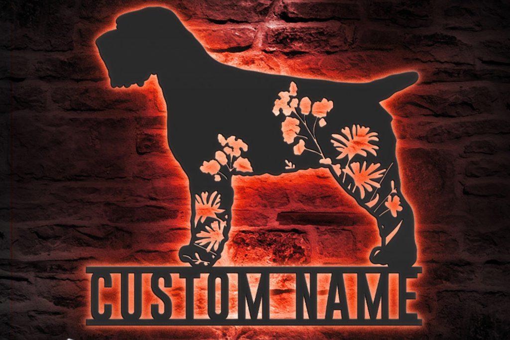Custom Floral Wirehaired Pointing Griffon Metal Sign with LED