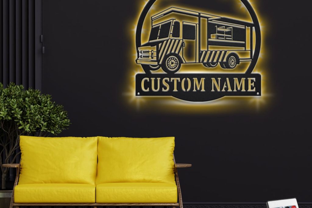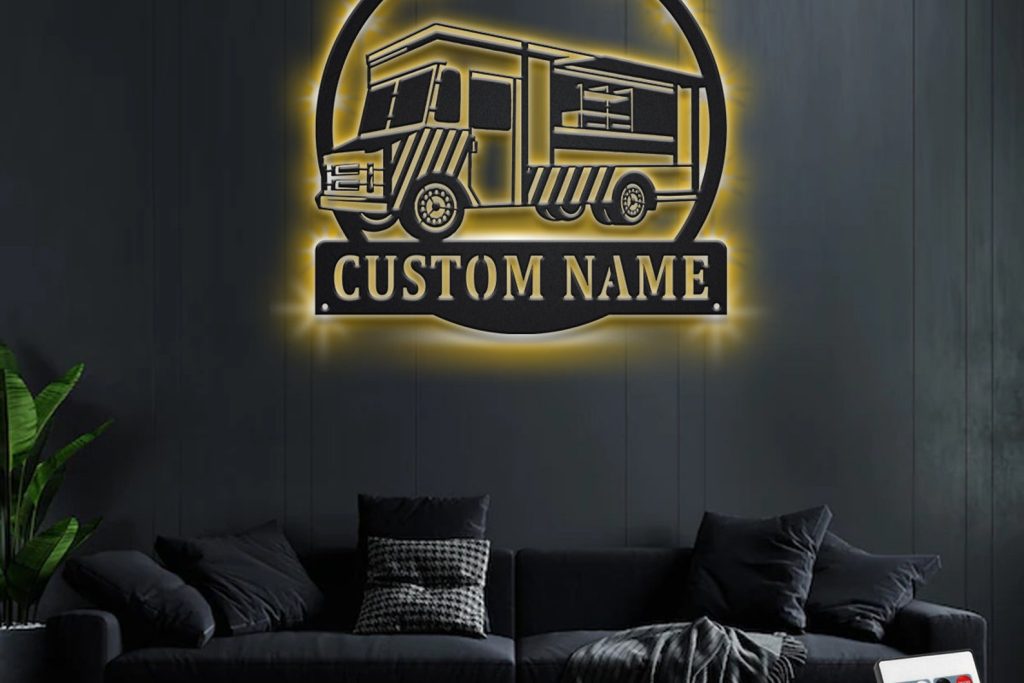 Custom Food Truck Metal Sign with LED – Room Decoration