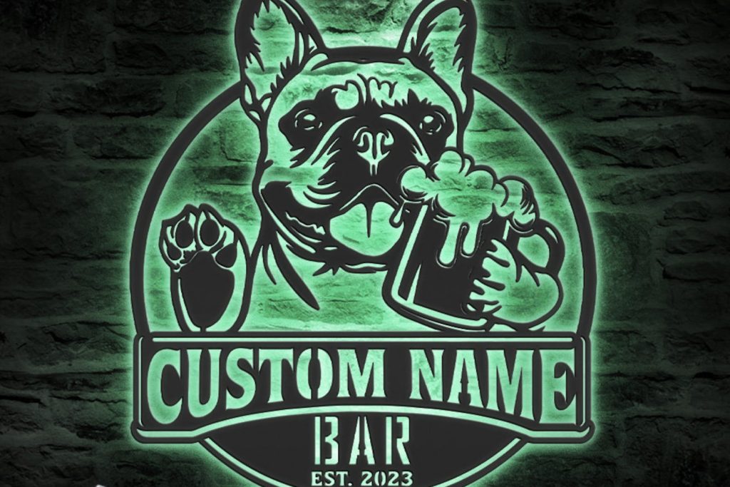 Be the first to review “Custom French Bulldog Beer Pub Metal Wall Art – LED Light, Personalized Sign”