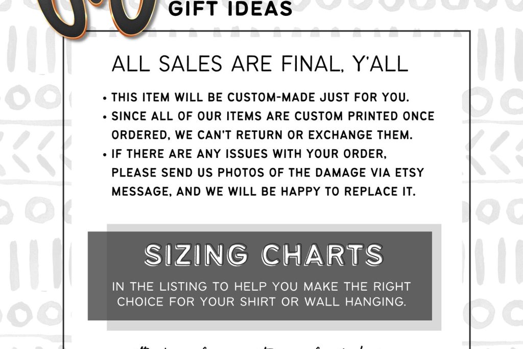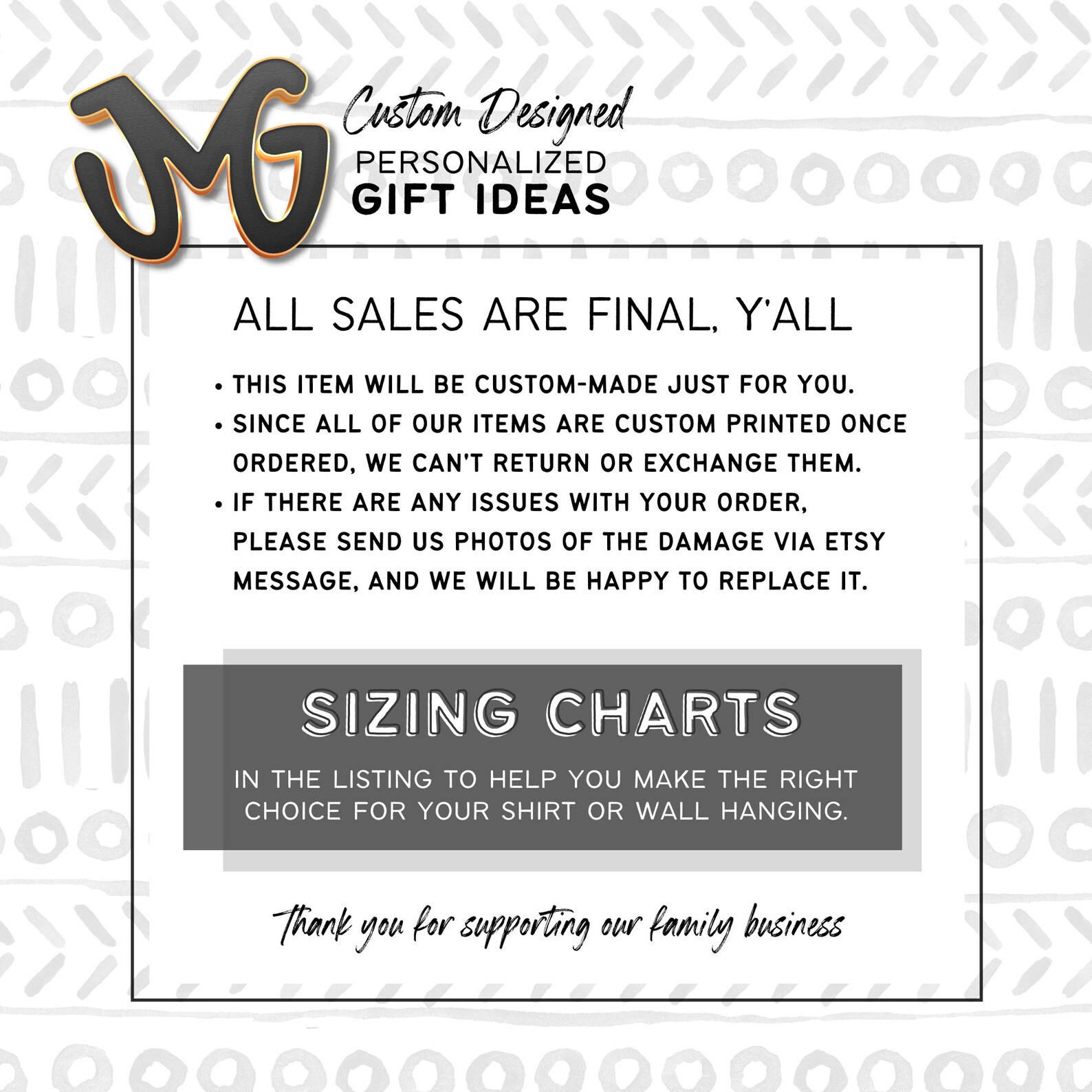 All items are custom-made to order and cannot be canceled, returned, or exchanged. All sales are final, so please double-check that your information, size/color/personalization choices are correct before placing your order. All items are handmade, custom-made to order just for you, and go directly into the production process once they enter our system; therefore, we can9;t make changes or cancellations once your order has been placed. Thank you for understanding.