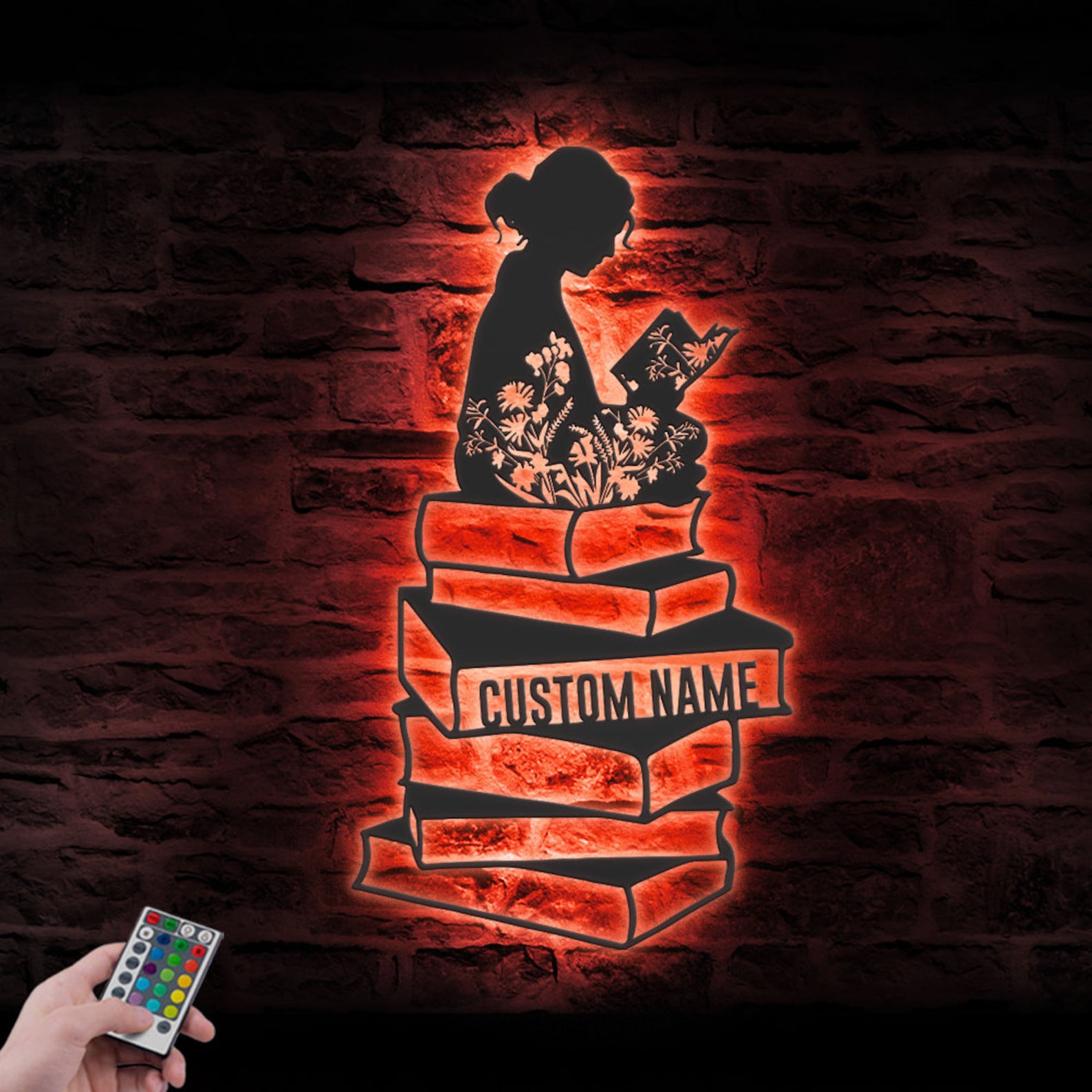 Be the first to review “Custom Girl Reading Metal Art with LED Light”