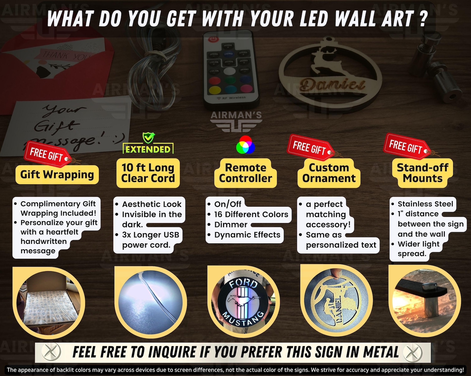 Illuminate your spaces with our neon LED sign, a fusion of neon and LED lights. This handcrafted wooden sign with a backlit glow is ideal as versatile wall decor for your living room, bedroom, or kitchen. Customize it with our personalized name sign options, making it a standout piece for any cabin, mancave, or business decor. A unique gift for him, her, or as a festive xmas gift. Perfect as bedside lighting or a welcoming entry highlight. Add elegance and warmth to every room. Additionally, LED colors may appear slightly varied across different devices. This is due to screen variations, not the actual color of the signs. We strive for utmost accuracy. Thank you for your understanding!