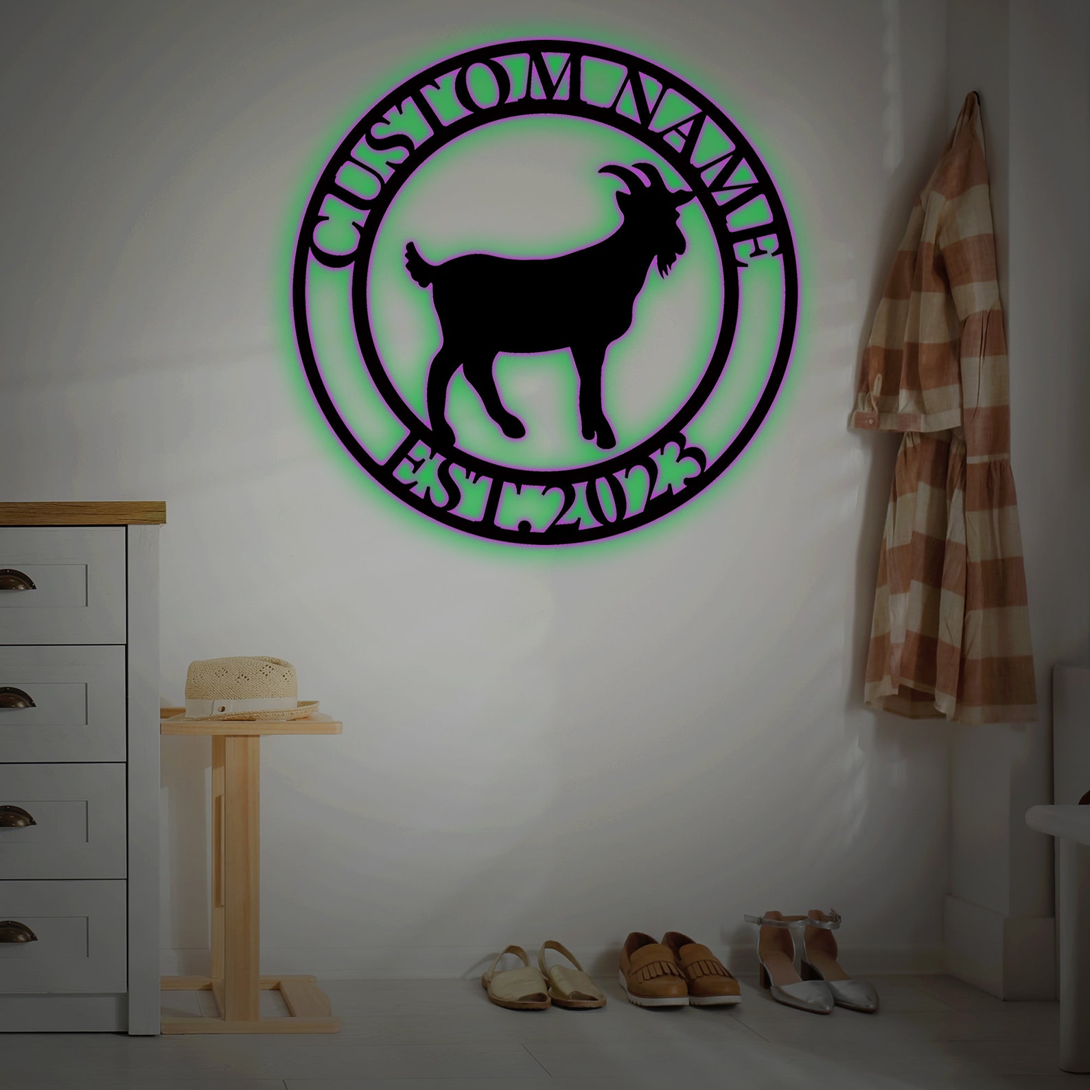 Be the first to review “Custom Goat Metal Sign with LED – Farmhouse Wall Decor”