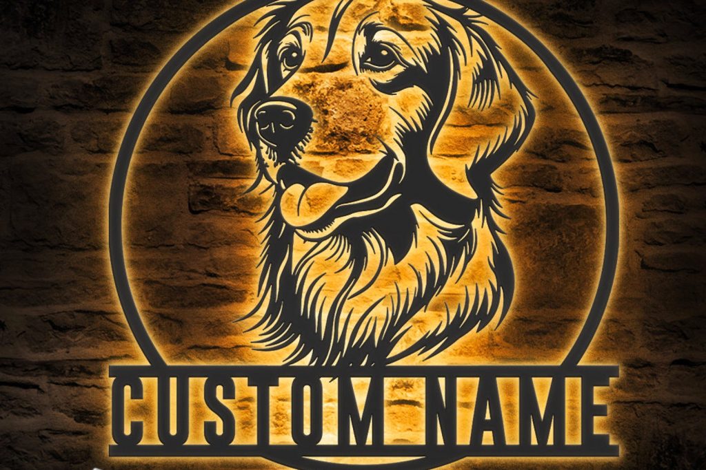 Be the first to review “Custom Golden Retriever Metal Wall Art with LED Light”