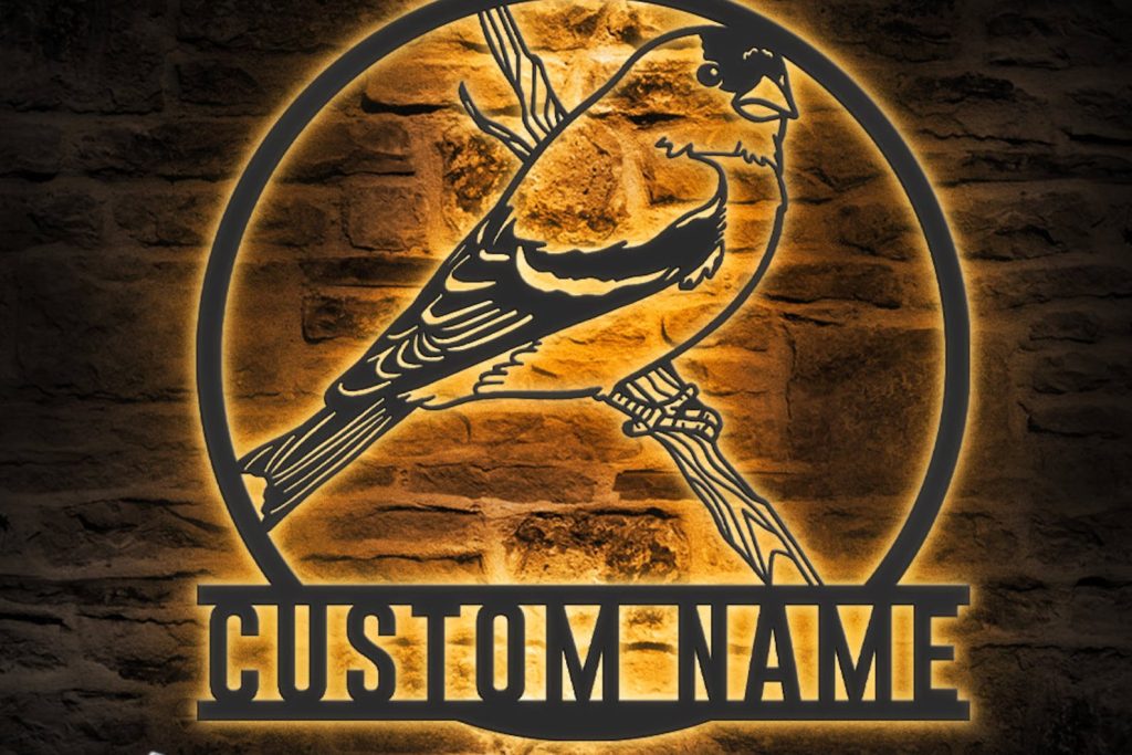 Custom Goldfinch Metal Wall Art with LED – Personalized Bird Lover Sign