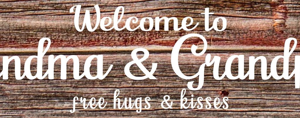 PERSONALIZE Welcome to Grandma n free hugs & kisses choose background – Barn wood or White Crackle- wood style backgrounds – Metal Sign Door Plaque – (Note not actual wood so smooth and safe to the touch)