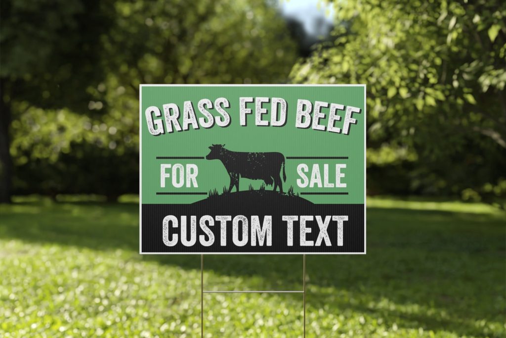 Custom Grass Fed Beef Metal Yard Sign – 24×18