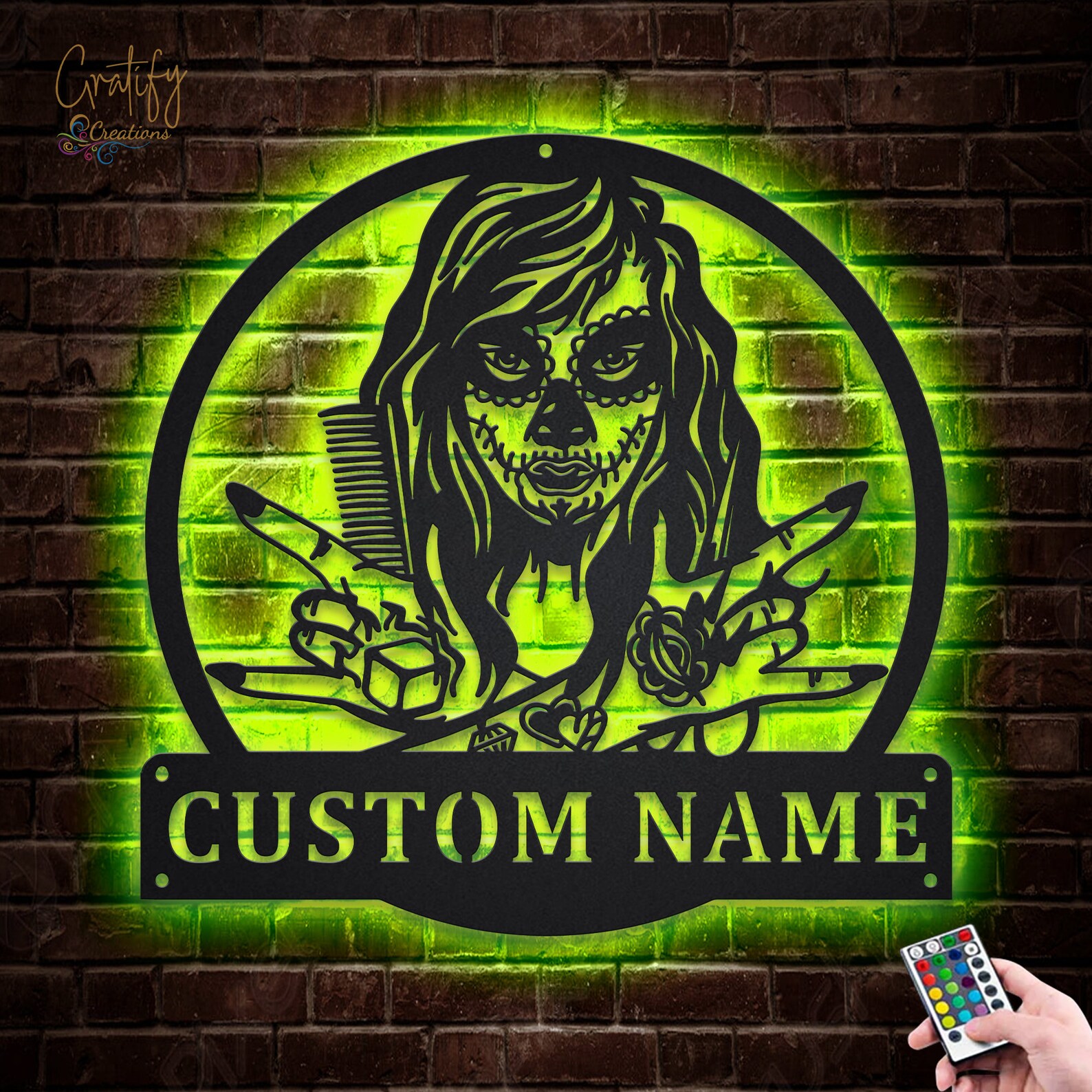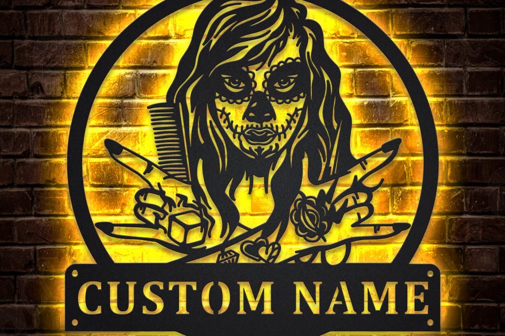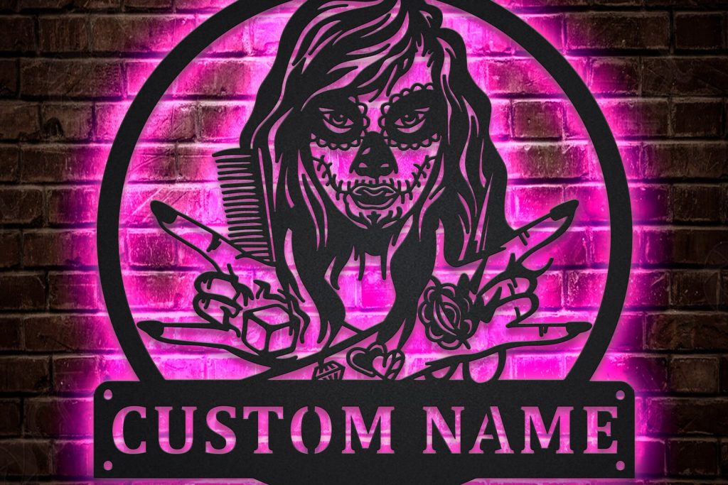 Be the first to review “Custom Hair Hustler Metal Sign with LED Lights V4”