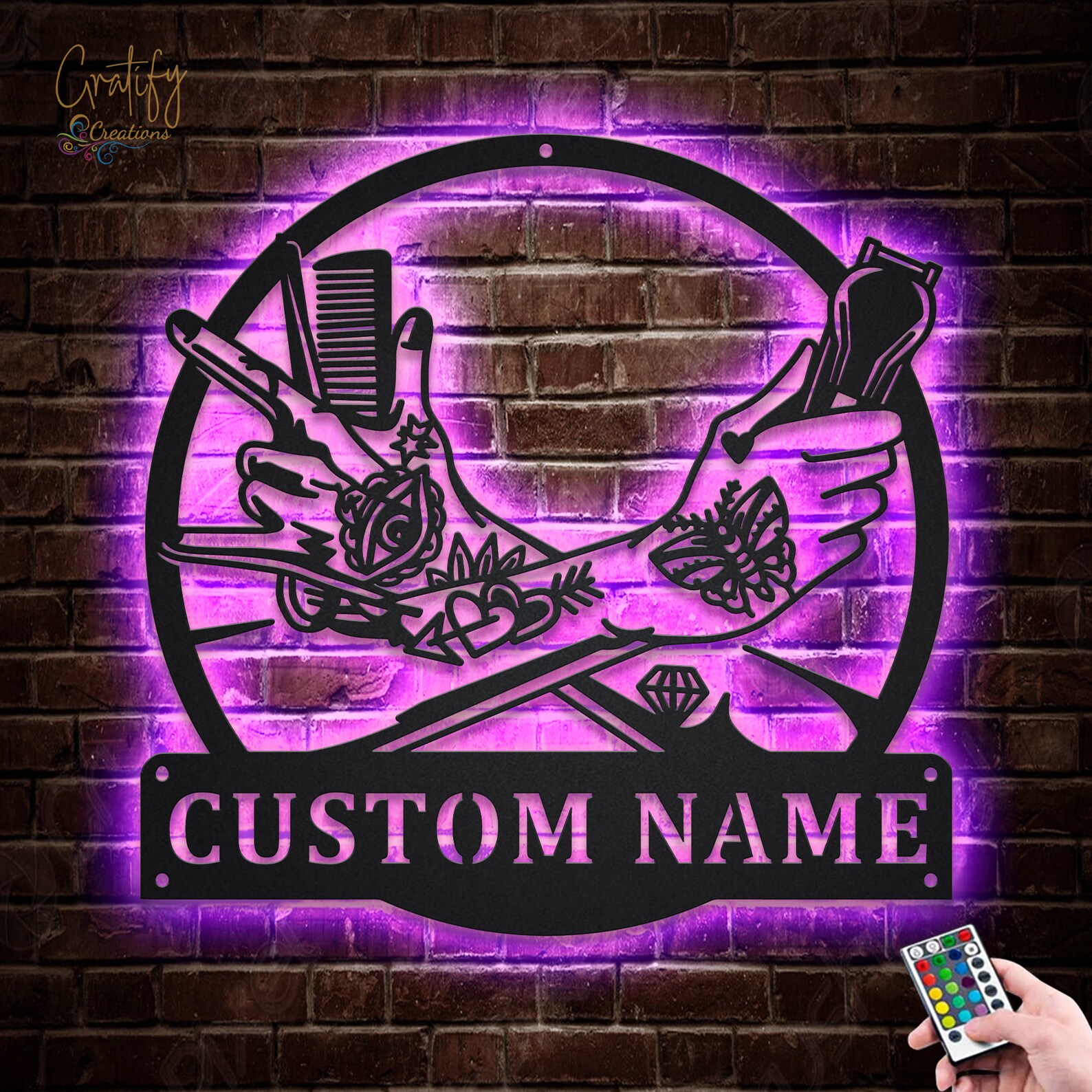 Be the first to review “Custom Hair Hustler Metal Sign with LED Lights V6”