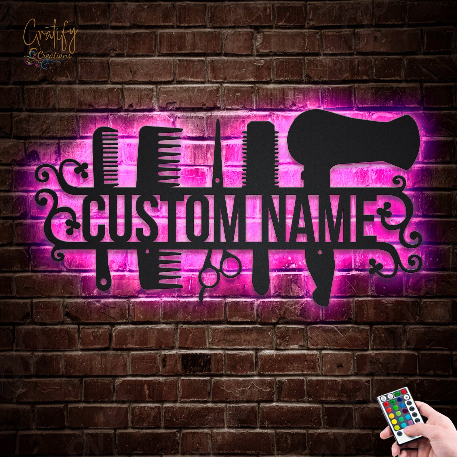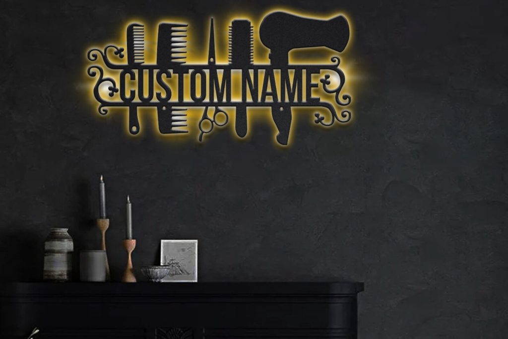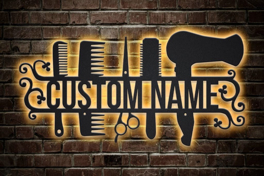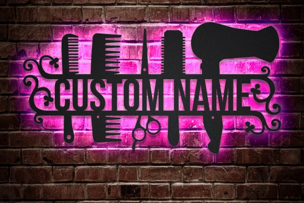 Be the first to review “Custom Hairdresser Tools Metal Sign with LED Lights”