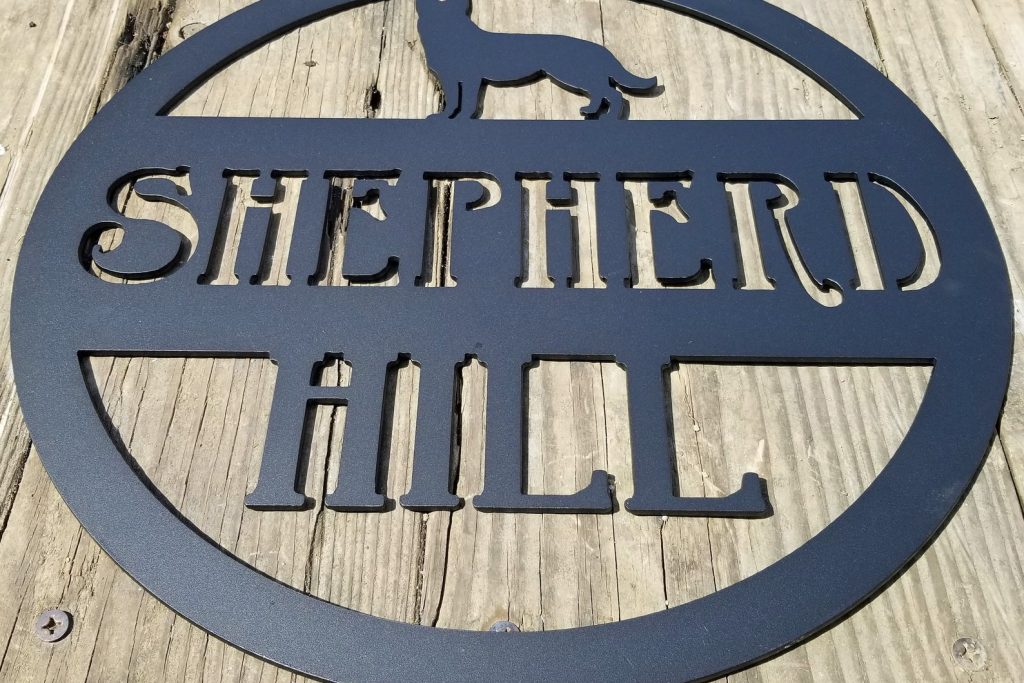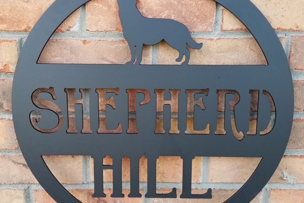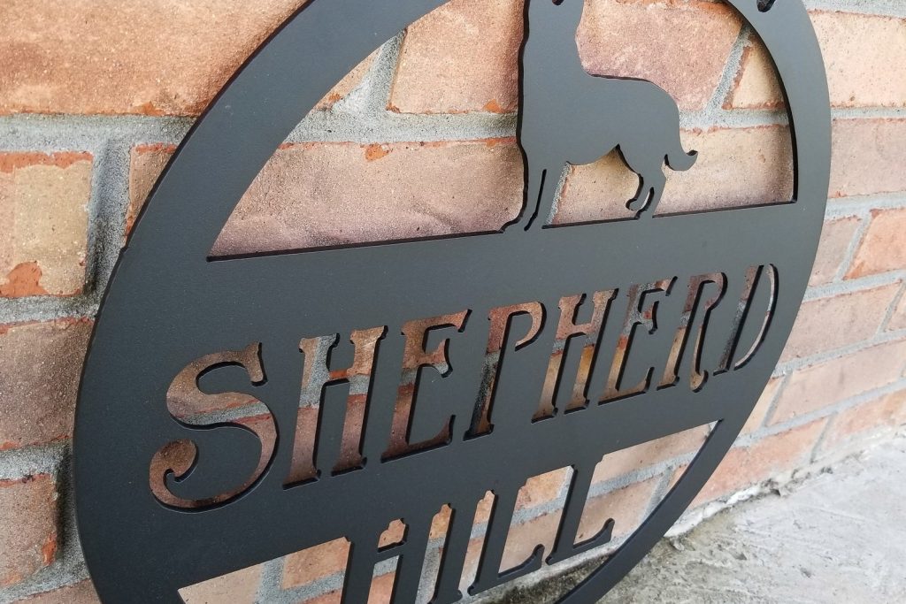 This hanging dog sign is a great gift for the dog lover in your life. Customize this metal sign with a dog breed and add a family name or the name of a property to make this a unique piece for someone whose dog is a member of the family.