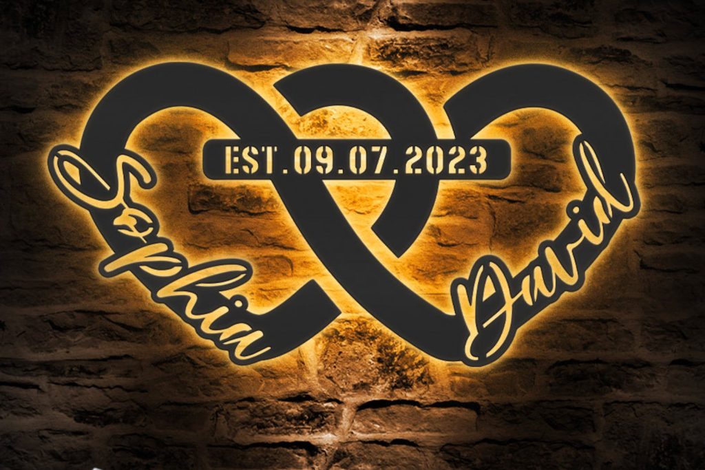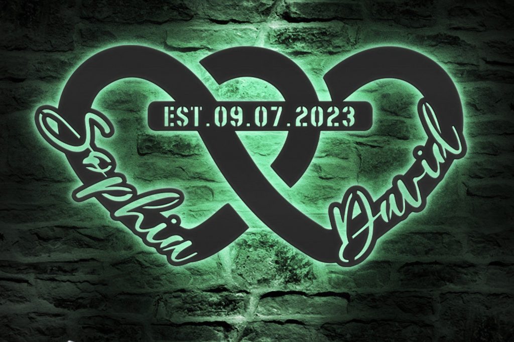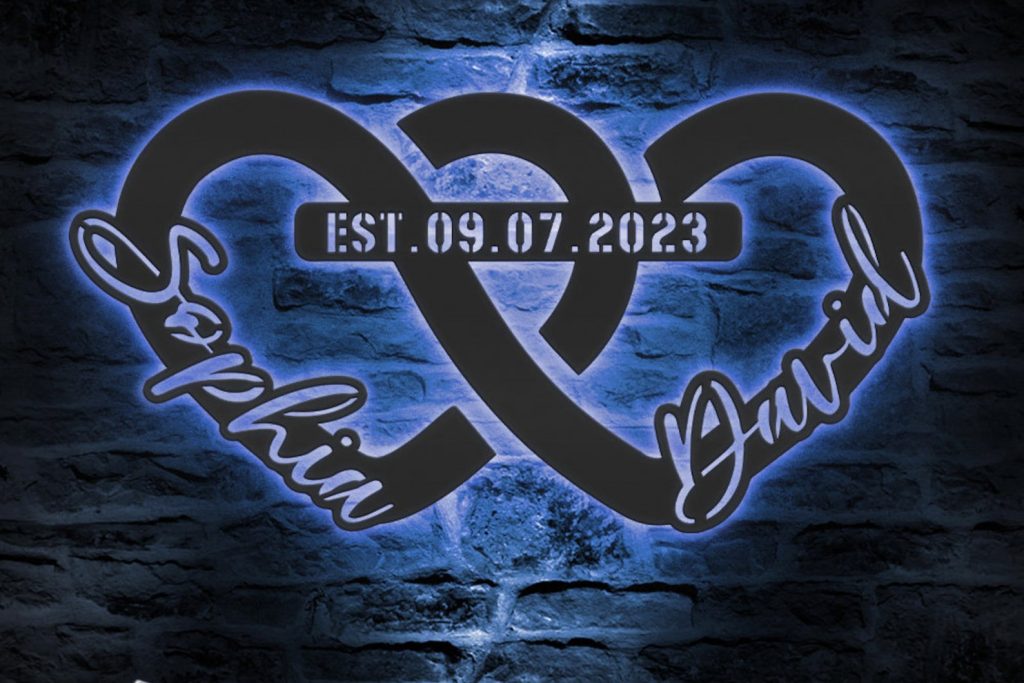 Custom Heart & Infinity Metal Sign with LED – Love Decor