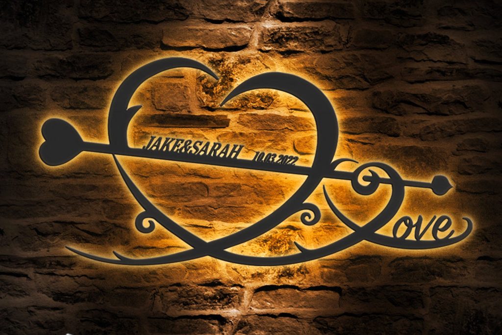 Custom Heart & Infinity Metal Sign with LED – Love Decor