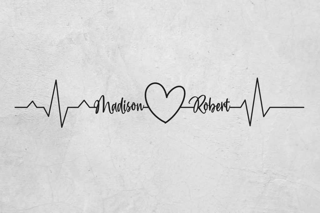 Custom named heartbeats and heart metal wall decor.