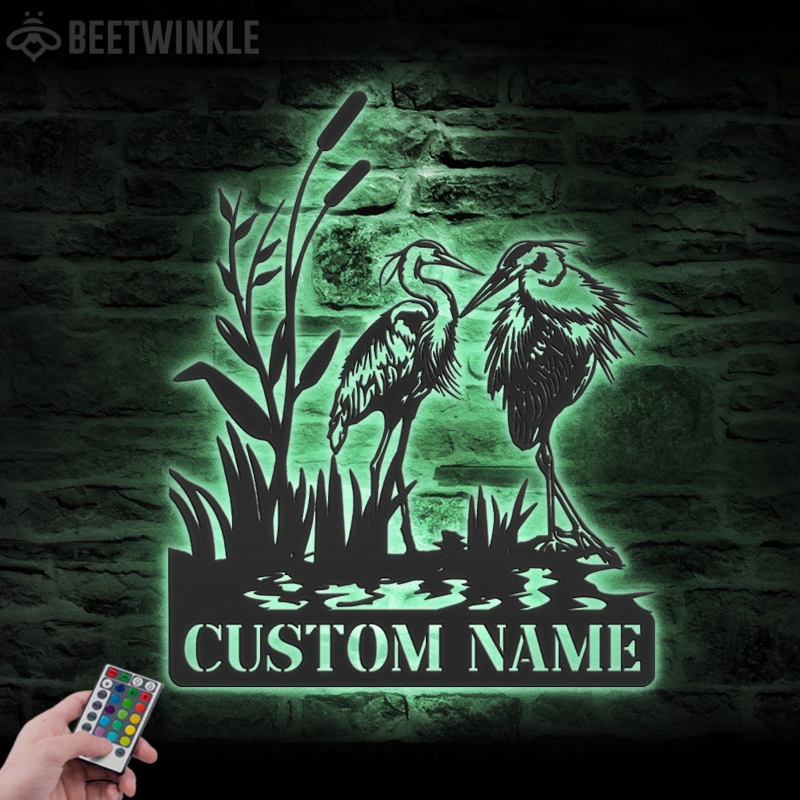 Be the first to review “Custom Heron Couple LED Metal Art – Personalized Family Sign”
