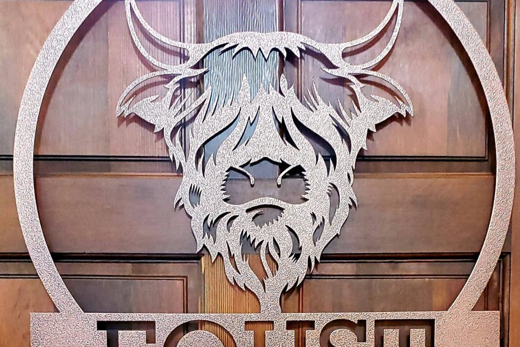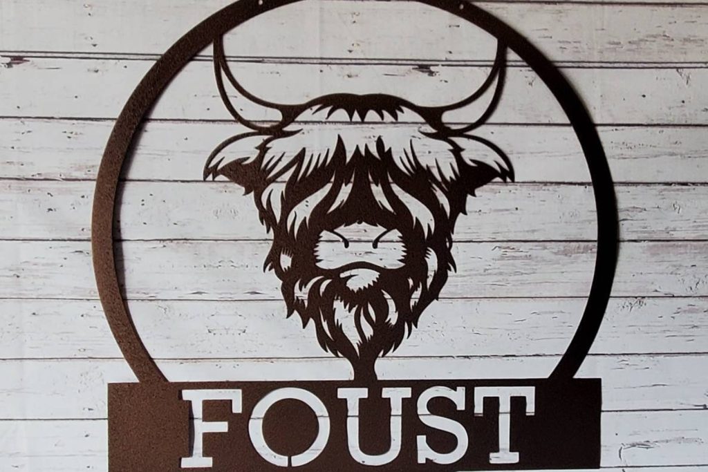 Custom Highland Cow Metal Door Hanger – Housewarming