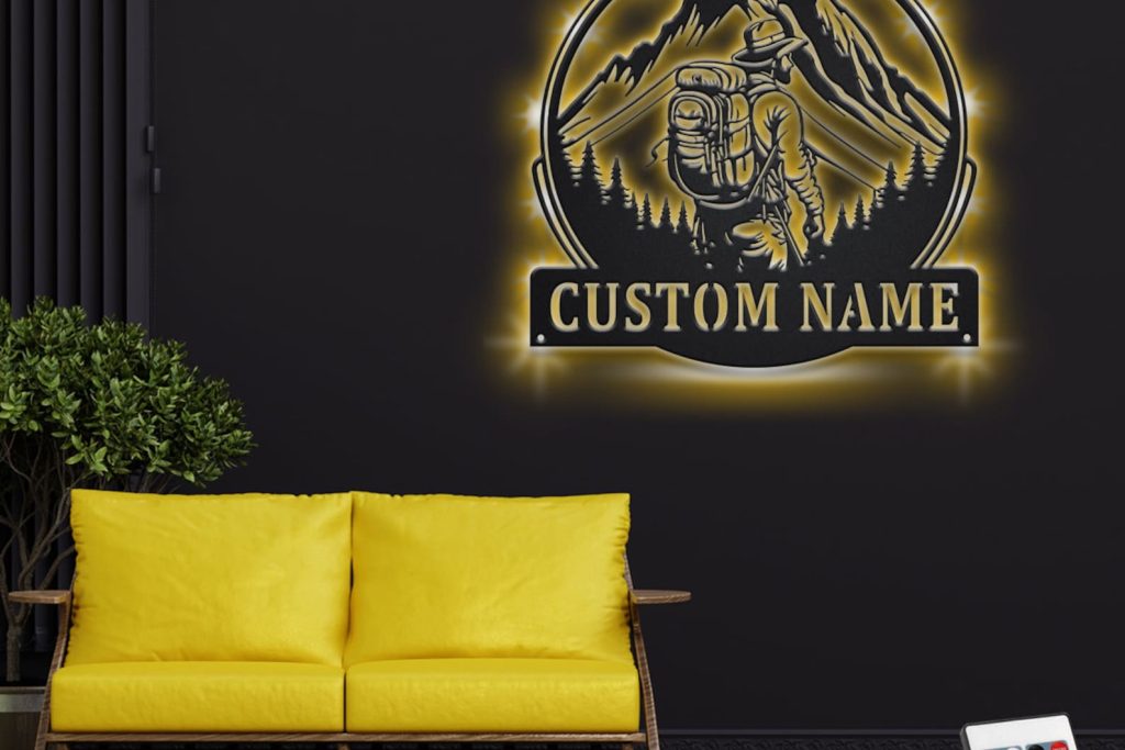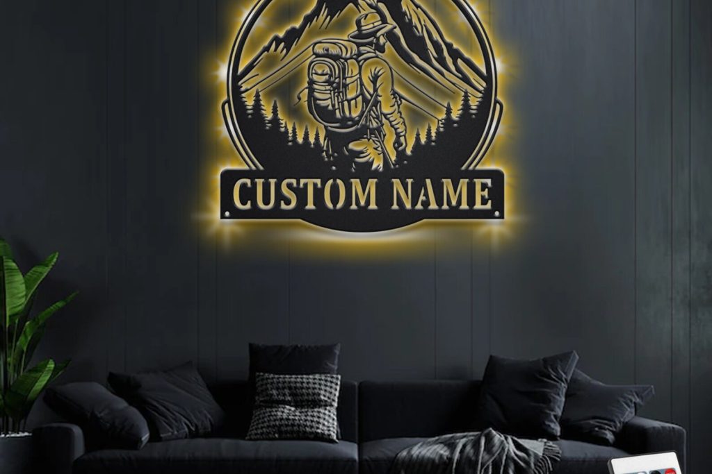 Custom Hiking Metal Sign with LED – Personalized Room Decoration