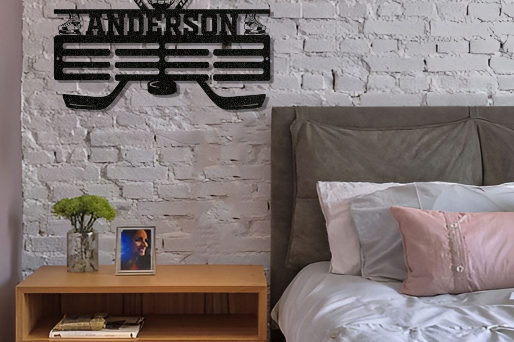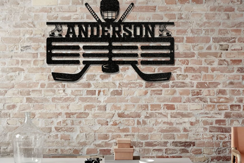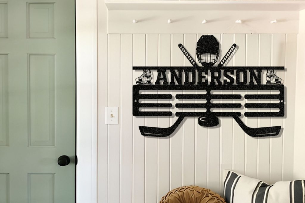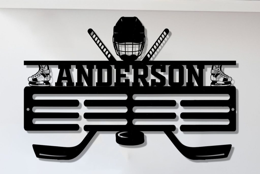 Custom hockey medal hanger, Personalized hockey medal holder monogram, Metal hockey sport, Hockey medal display, Gift for men
