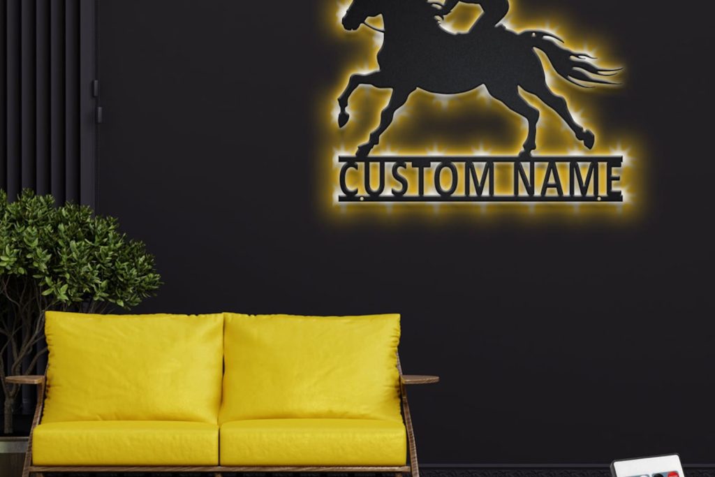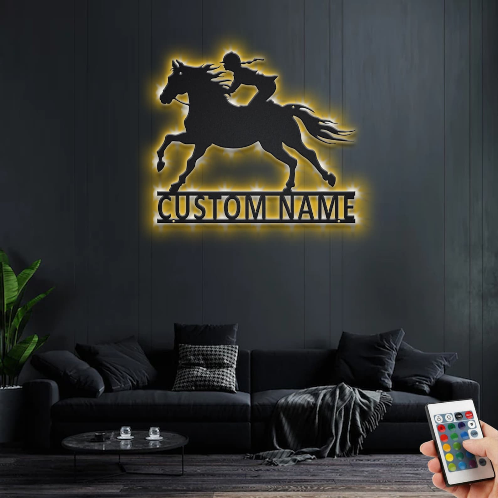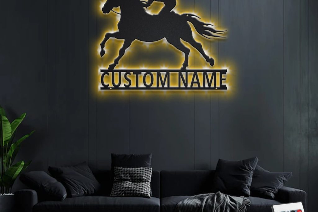 Custom Horse Racing Metal Sign with LED – Racer Room Decor