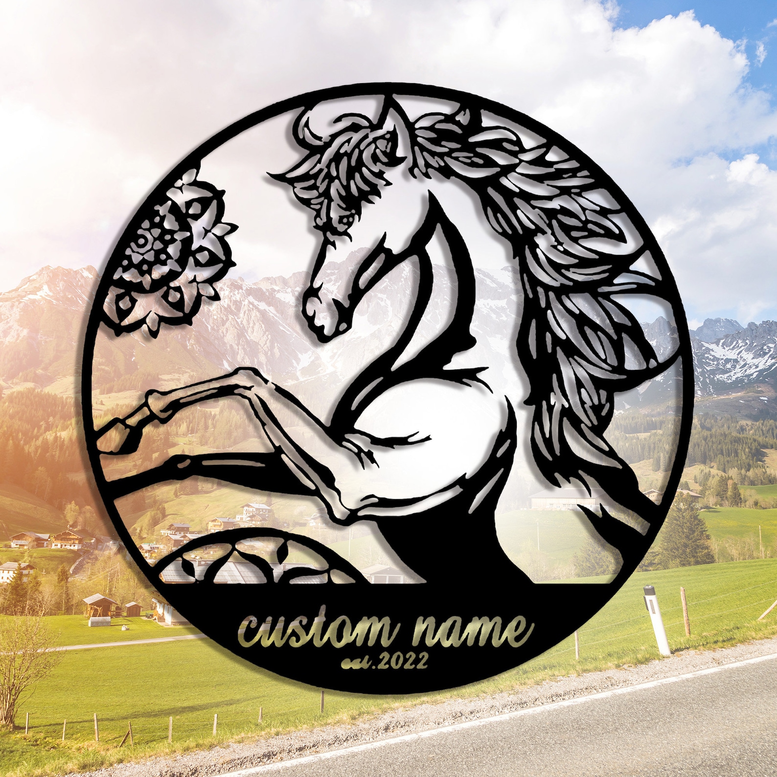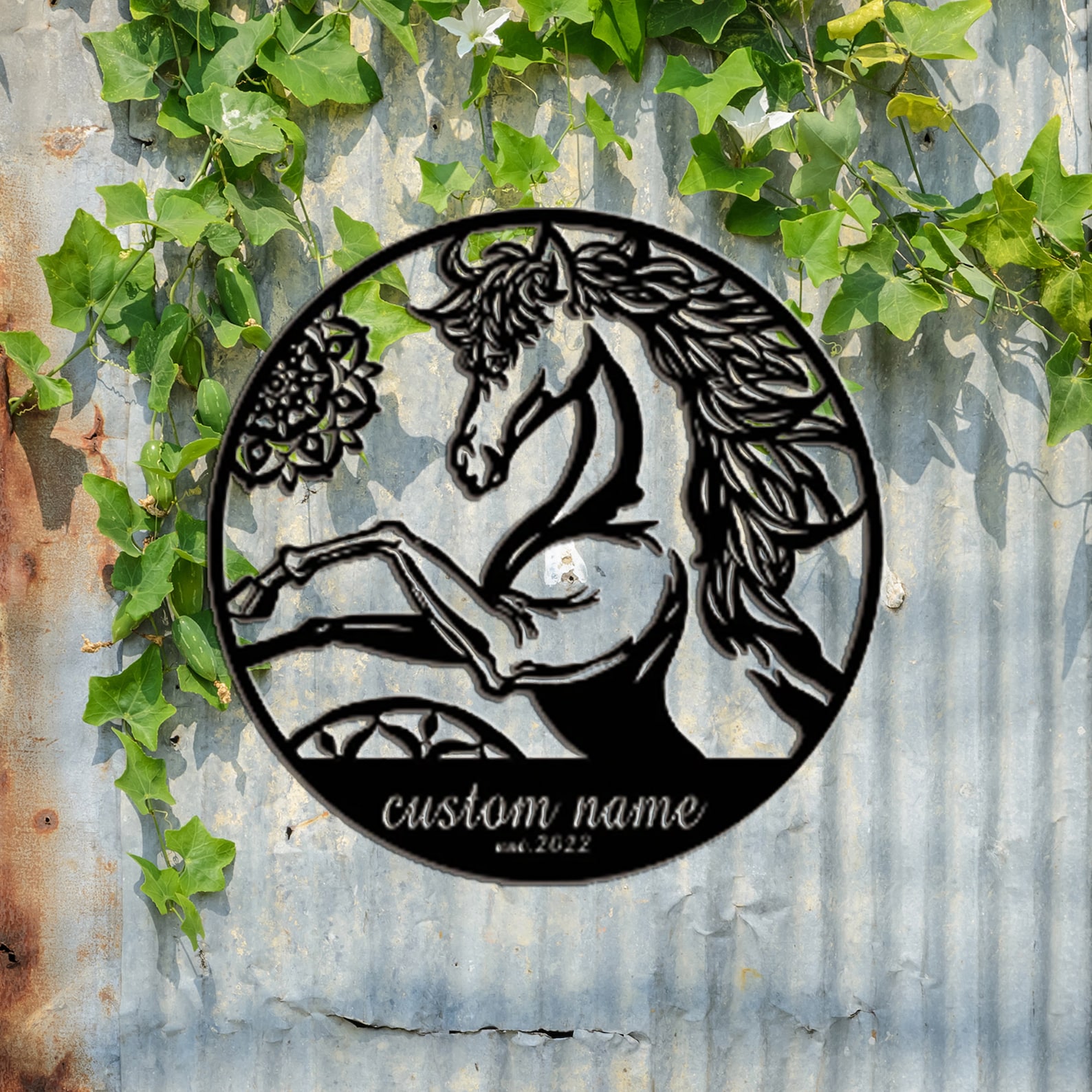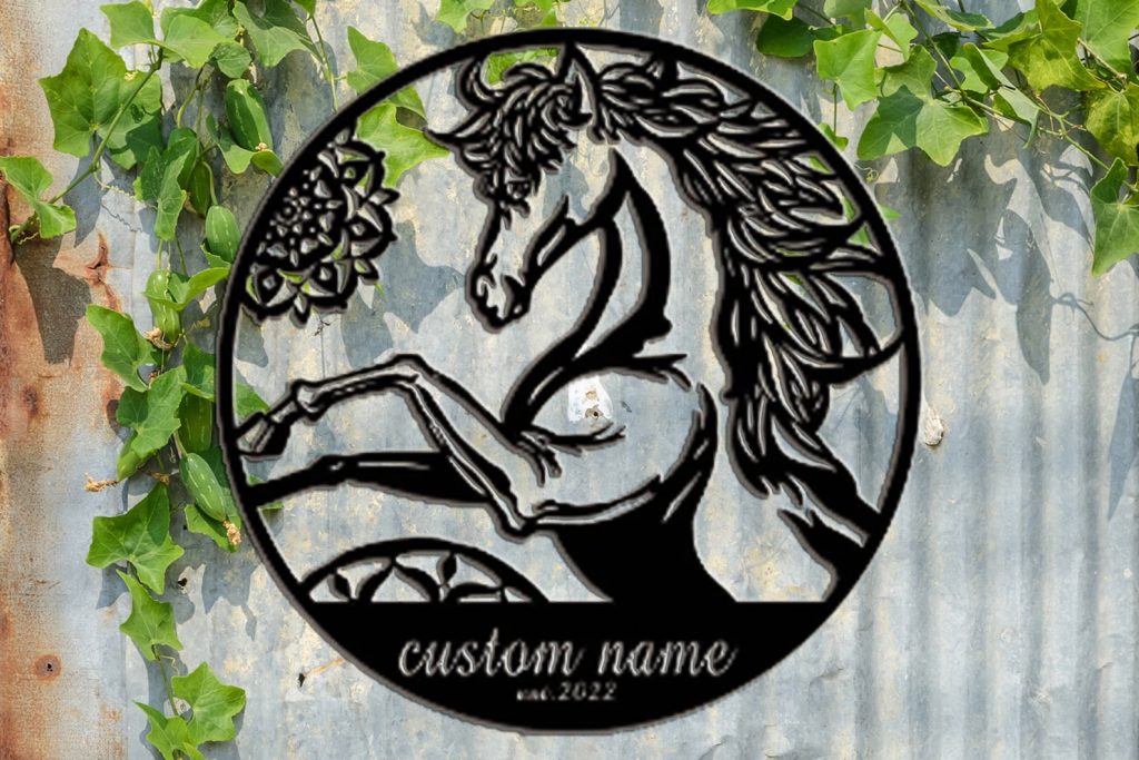 custom horse metal wall art modern animal wall, personalized farmhouse sign, metal sign with name, custom horse decoration, metal wall decoration