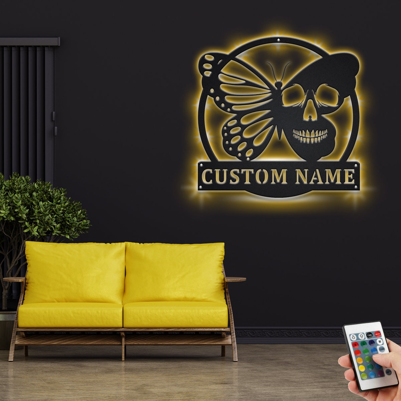 Custom LED Butterfly Skull Art – Gothic Wall Decor