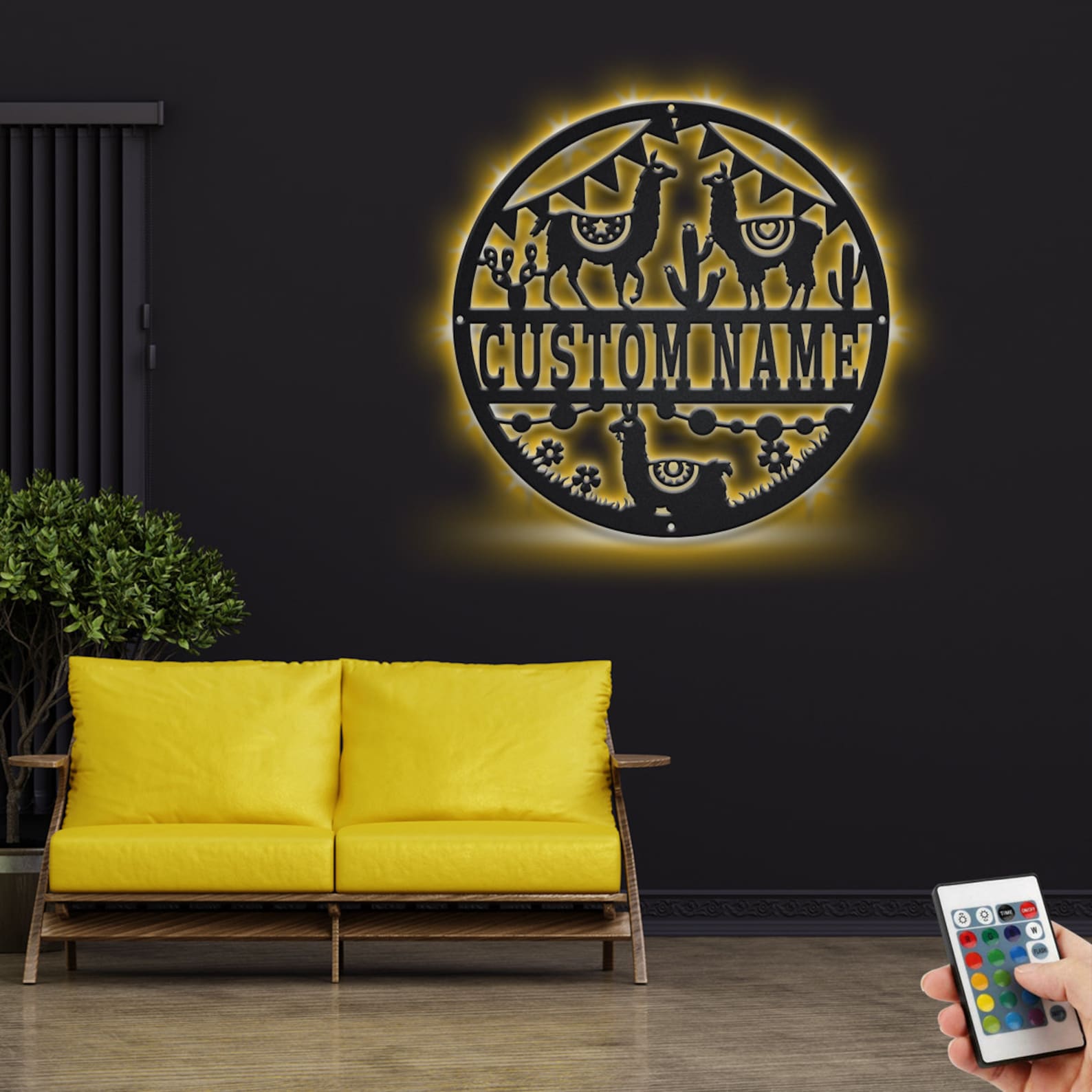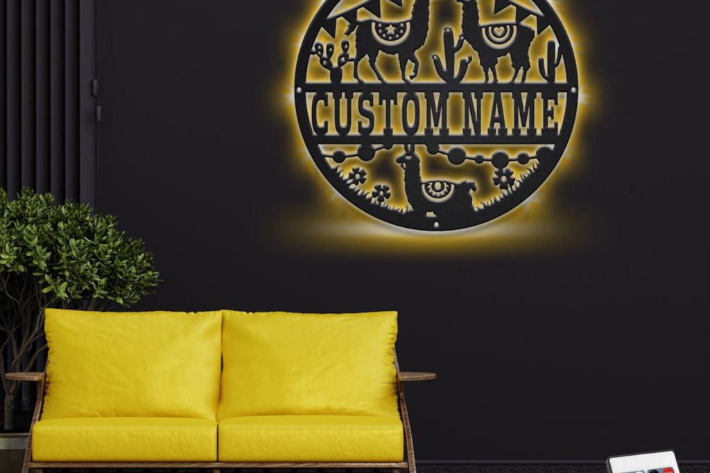 Custom LED Llama Wall Art – Personalized Metal Sign