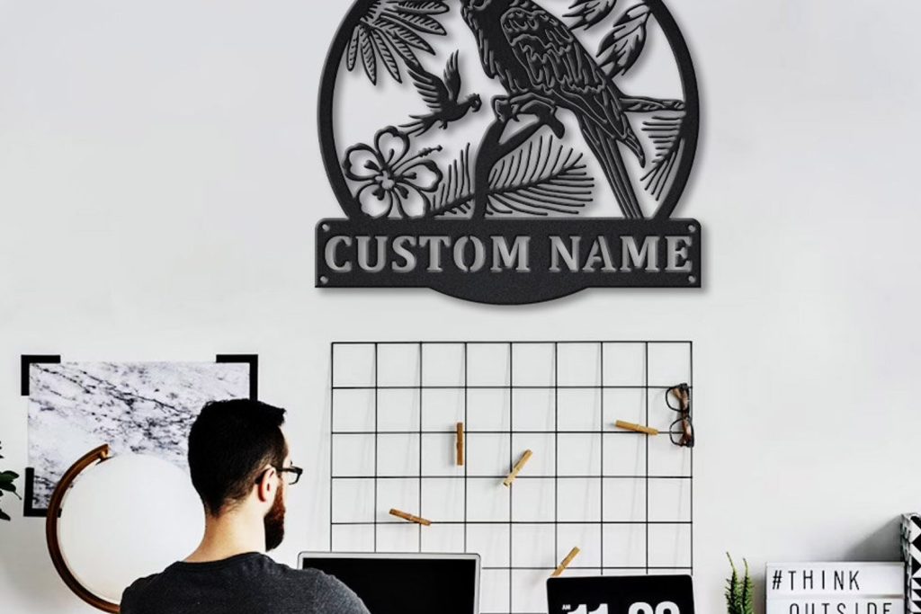 Be the first to review “Custom Macaw Bird Monogram Metal Sign for Decor”