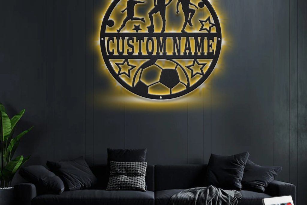 Custom Male Soccer Player Metal Wall Art with LED Light
