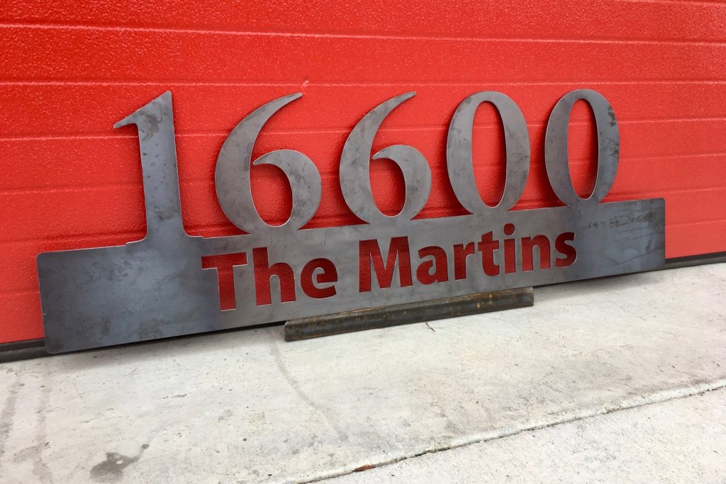 This personalized metal sign is a perfect addition to your home, office, shop, or garage! This product is great to hang near your front entrance, inside your home, on your door or patio, in your man cave, and many more places. Item pictured is raw with no paint, comparable to clear coat. This is a great gift for family and friends.