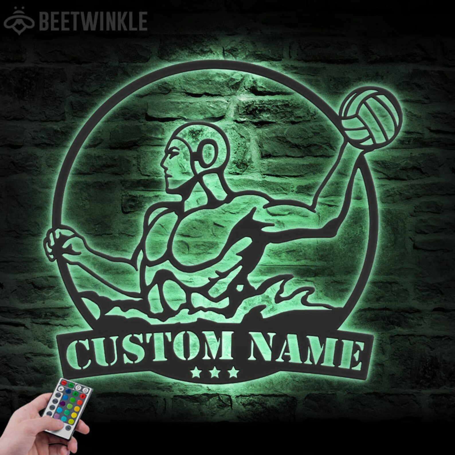 Be the first to review “Custom Man Water Polo Metal Art with LED Light”