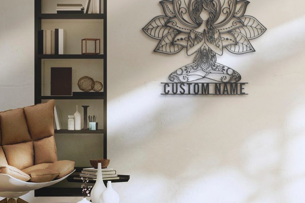 Custom Mandala Yoga Girl Metal Art with LED Light