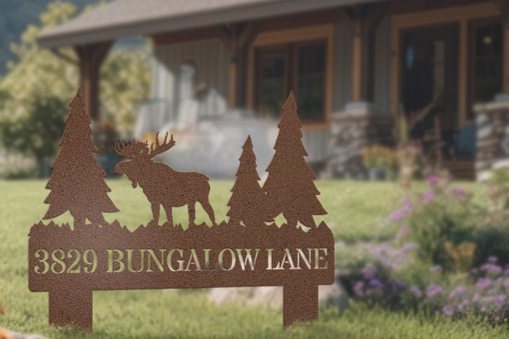 Elevate your outdoor space with our exquisite steel lawn address signs, seamlessly blending nature-inspired designs with functional elegance. At One Bungalow Lane, we take pride in our craftsmanship and personalized charm. Whether displaying your address, family name, or a combination of both, our signs infuse a unique touch into your abode.