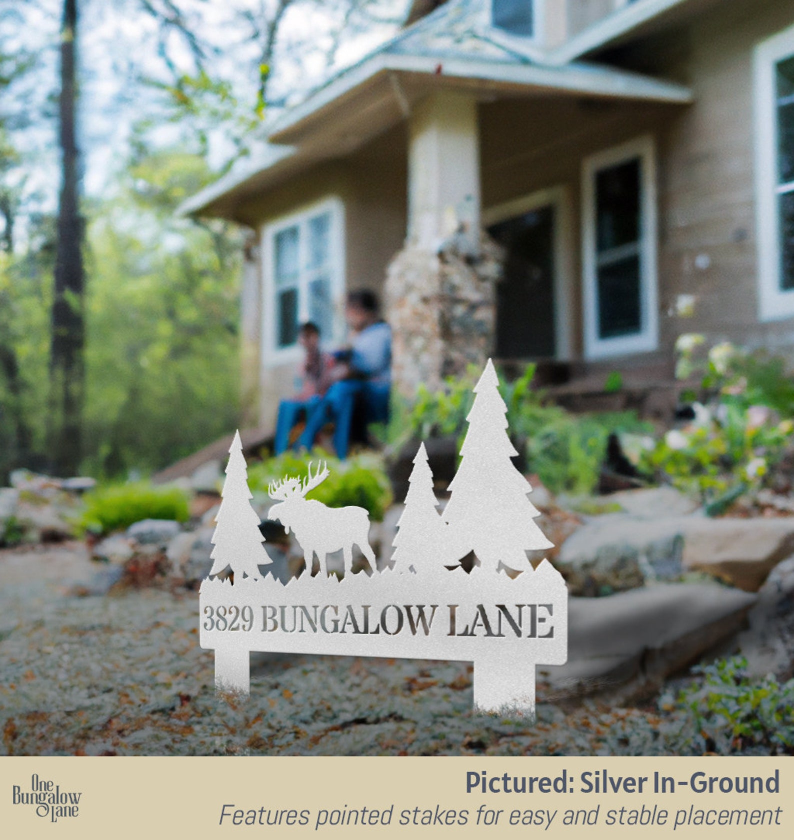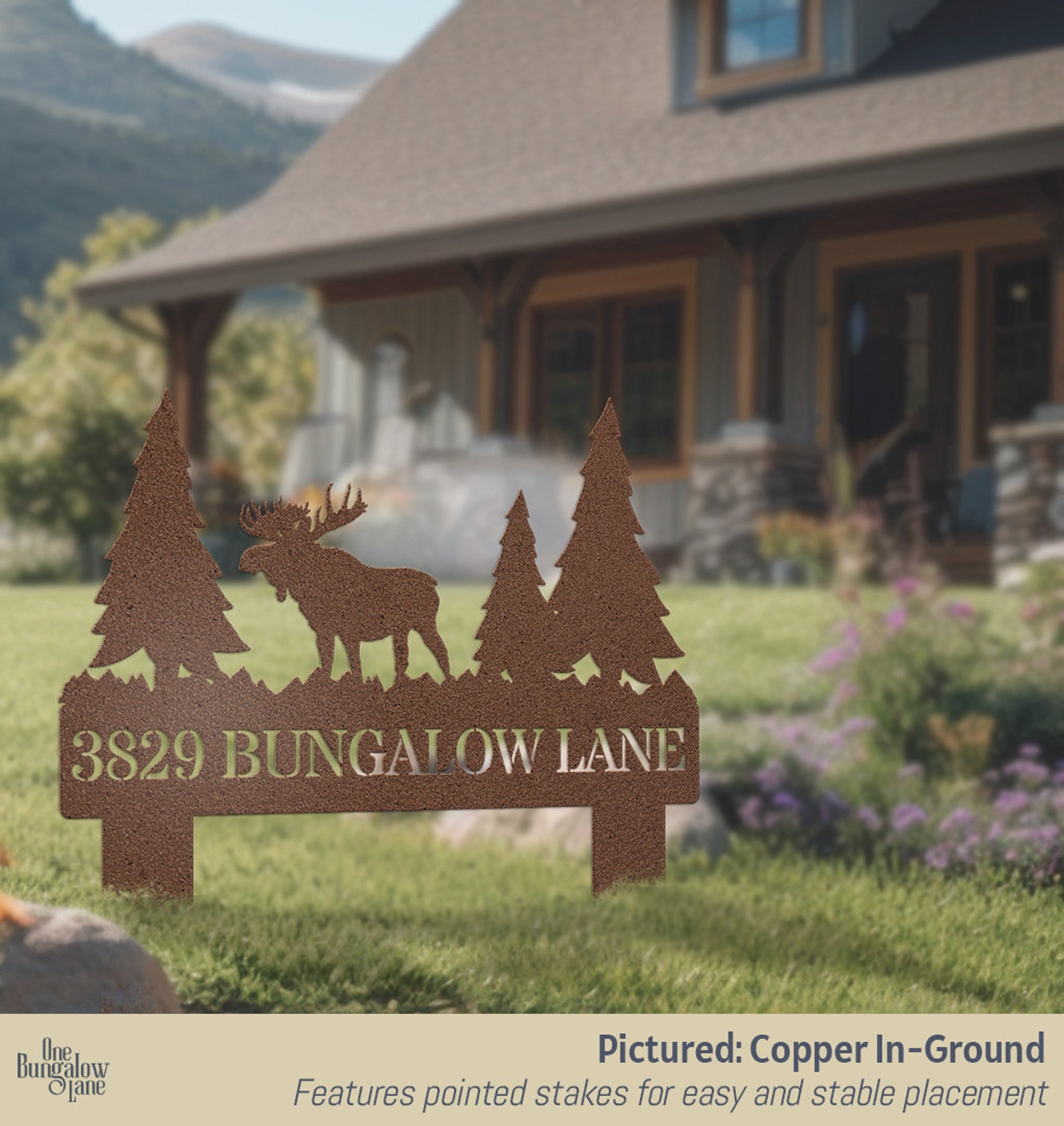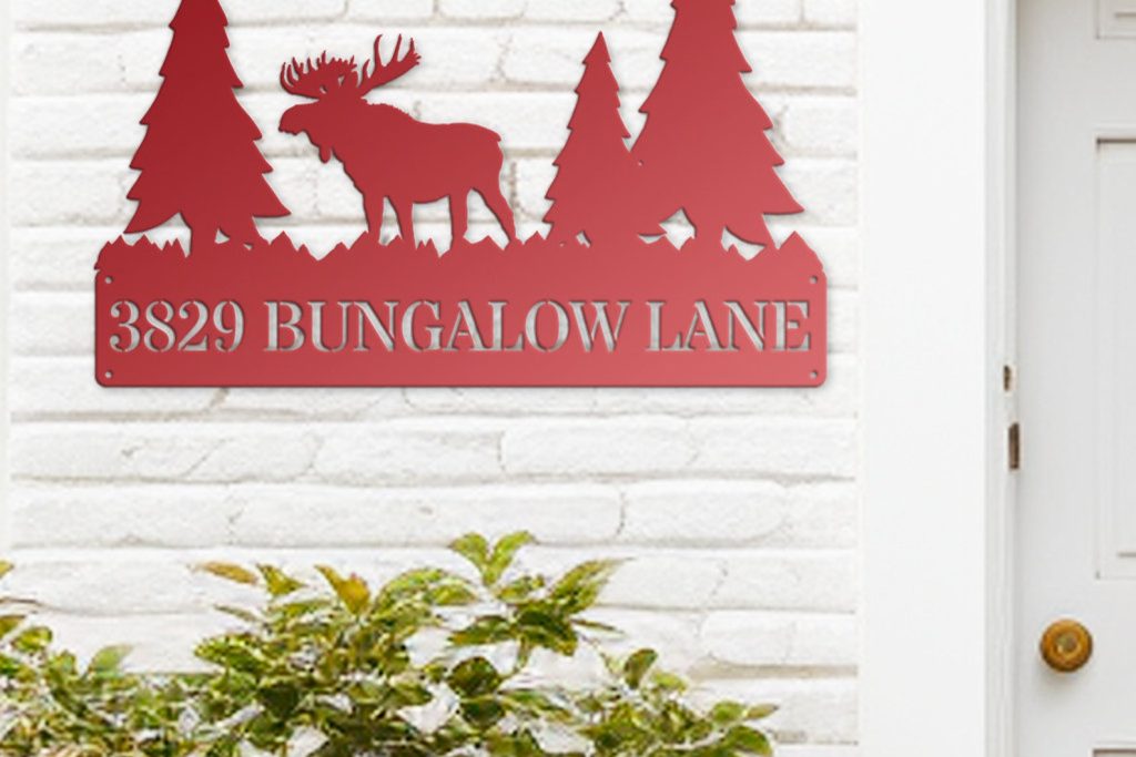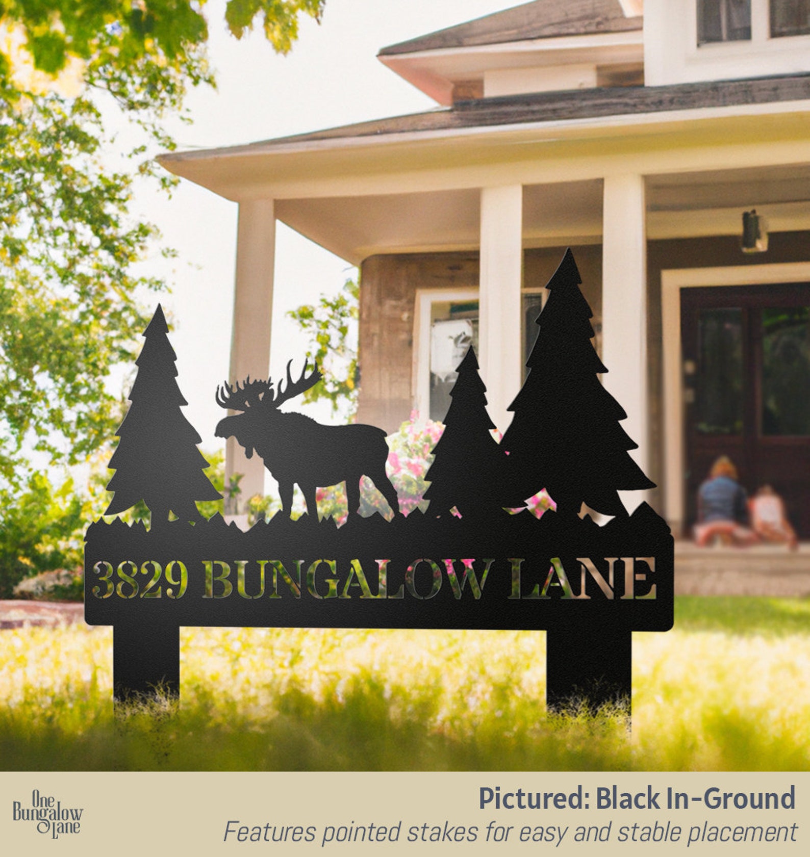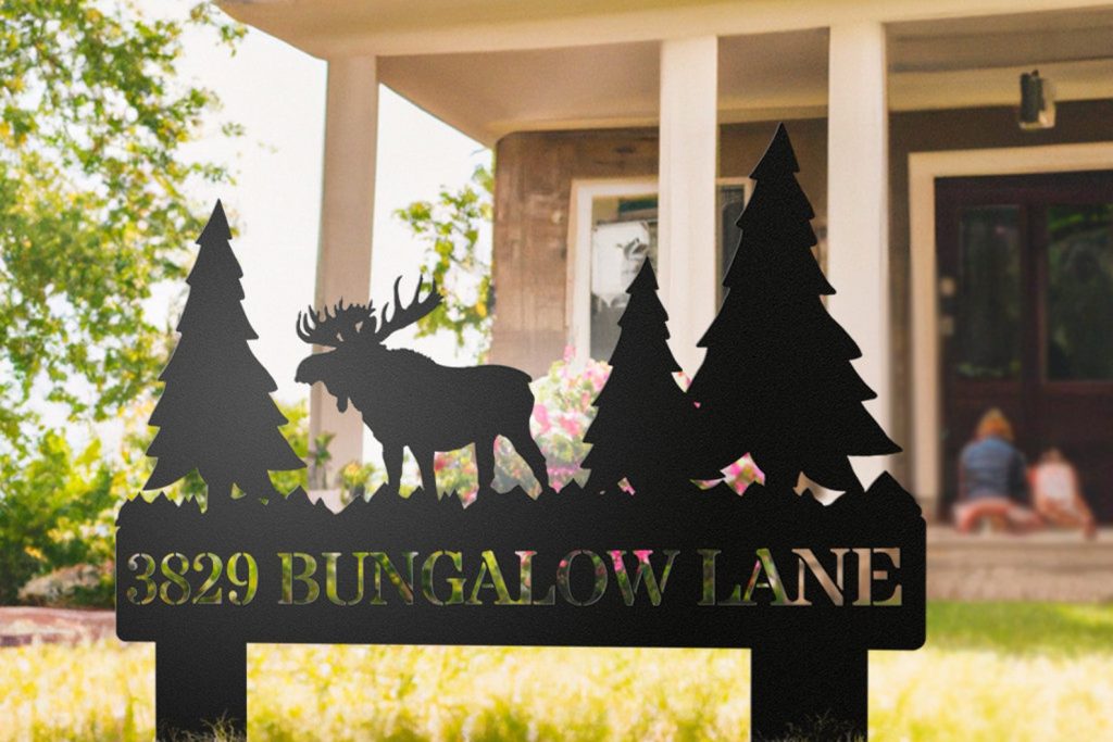 Metal Address SigntStreet Number SignstGround With StakestCustom House NumbertSigns for Front LawntMountain Cabin DecortDeer Moose DecortVintage AirBNB DecortAddress Sign Elktlarge black whitetcopper red silvertfront door porchtFamily Name Rock