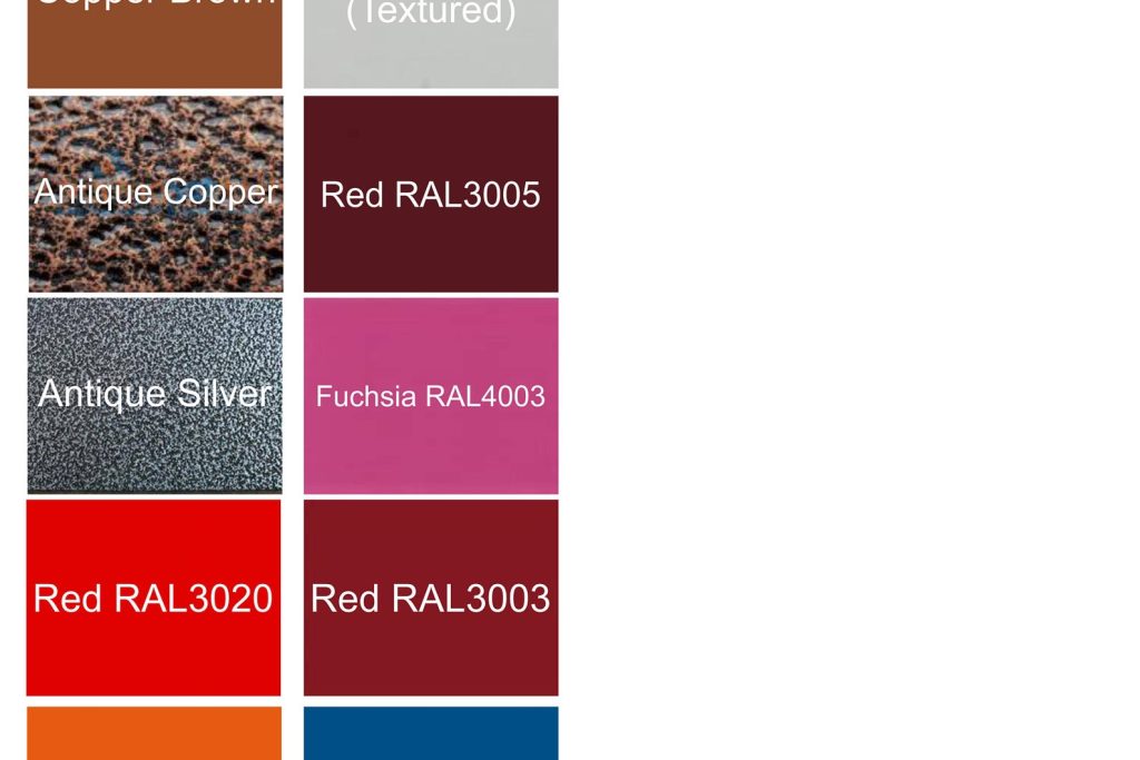 Item pictured is plain steel however we have many powder coating options for a tough long lasting finish. NOT STOCK THE COLOUR YOU WANT? then please get in touch, we have access to the whole spectrum of colours even with textured finishes